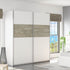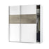 El armario de dos puertas correderas OIKOS destaca por su imponente diseño de líneas contemporáneas y su gran capacidad, convirtiéndose en una pieza fundamental para dormitorios principales que buscan maximizar el espacio de almacenaje. Su estética elegante, con un sutil contraste horizontal en sus paneles, aporta amplitud visual a la estancia y permite optimizar al máximo las zonas de paso gracias a su cómodo y fluido sistema de apertura deslizante.