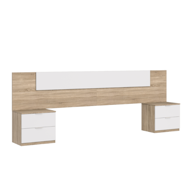 Pensado para sumar tanto en diseño como en utilidad diaria, el conjunto incorpora dos prácticas mesitas equipadas con dos amplios cajones cada una, ofreciendo el espacio perfecto para mantener tus objetos personales organizados y siempre a tu alcance. Para garantizar una experiencia de uso excelente y gran durabilidad, el mueble cuenta con guías correderas metálicas de suave deslizamiento, tiradores de aluminio, los herrajes necesarios para una firme fijación del cabezal a la pared, y tacos en la base que protegen el suelo de tu hogar frente a posibles arañazos.