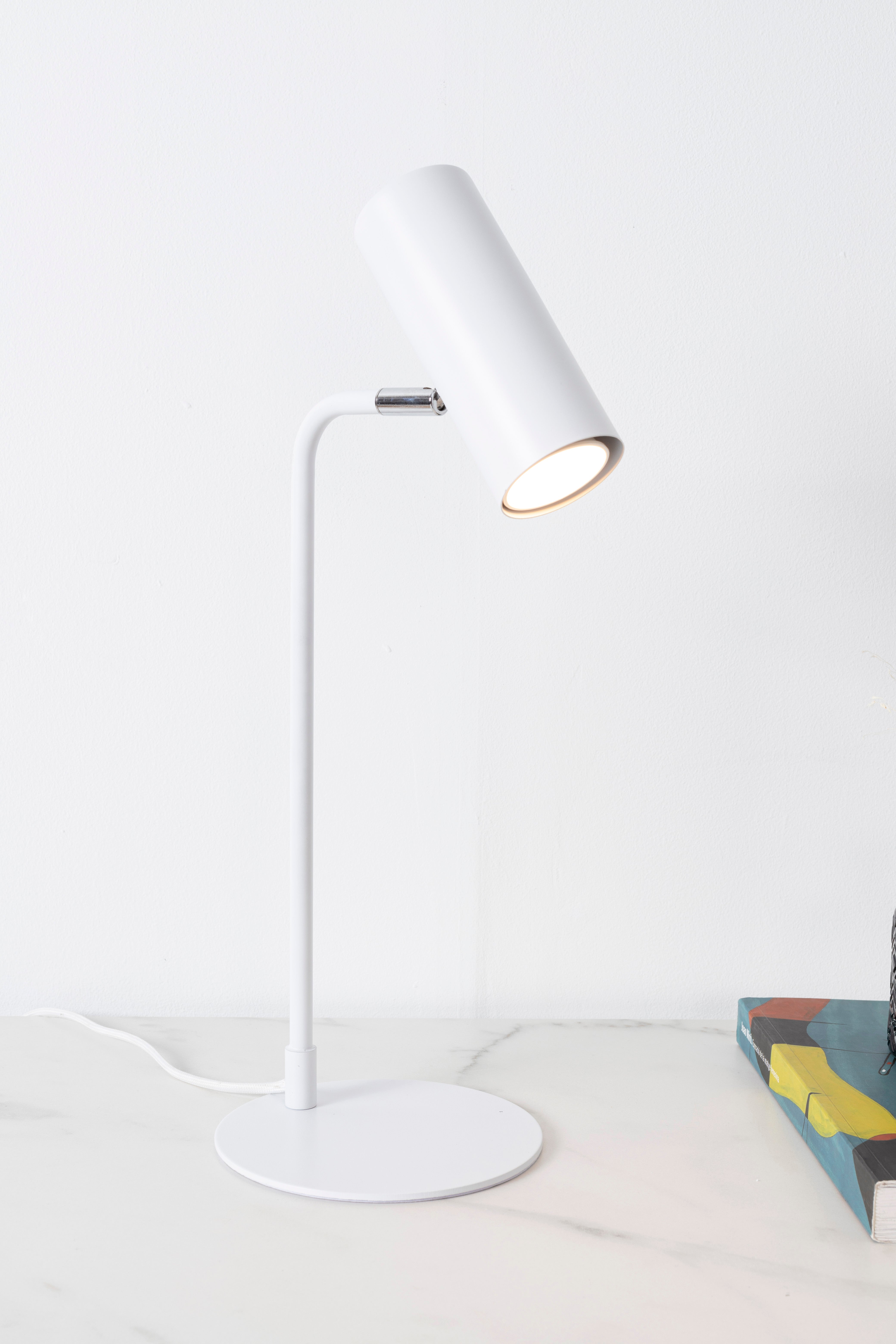 La lámpara de sobremesa Focus destaca por su diseño funcional y minimalista, concebida para integrarse con naturalidad en espacios de trabajo, estudio o rincones de lectura. Su estética depurada y su estructura orientable permiten dirigir la luz de manera precisa, convirtiéndola en una pieza clave para quienes buscan una iluminación directa sin renunciar a un estilo moderno y atemporal.