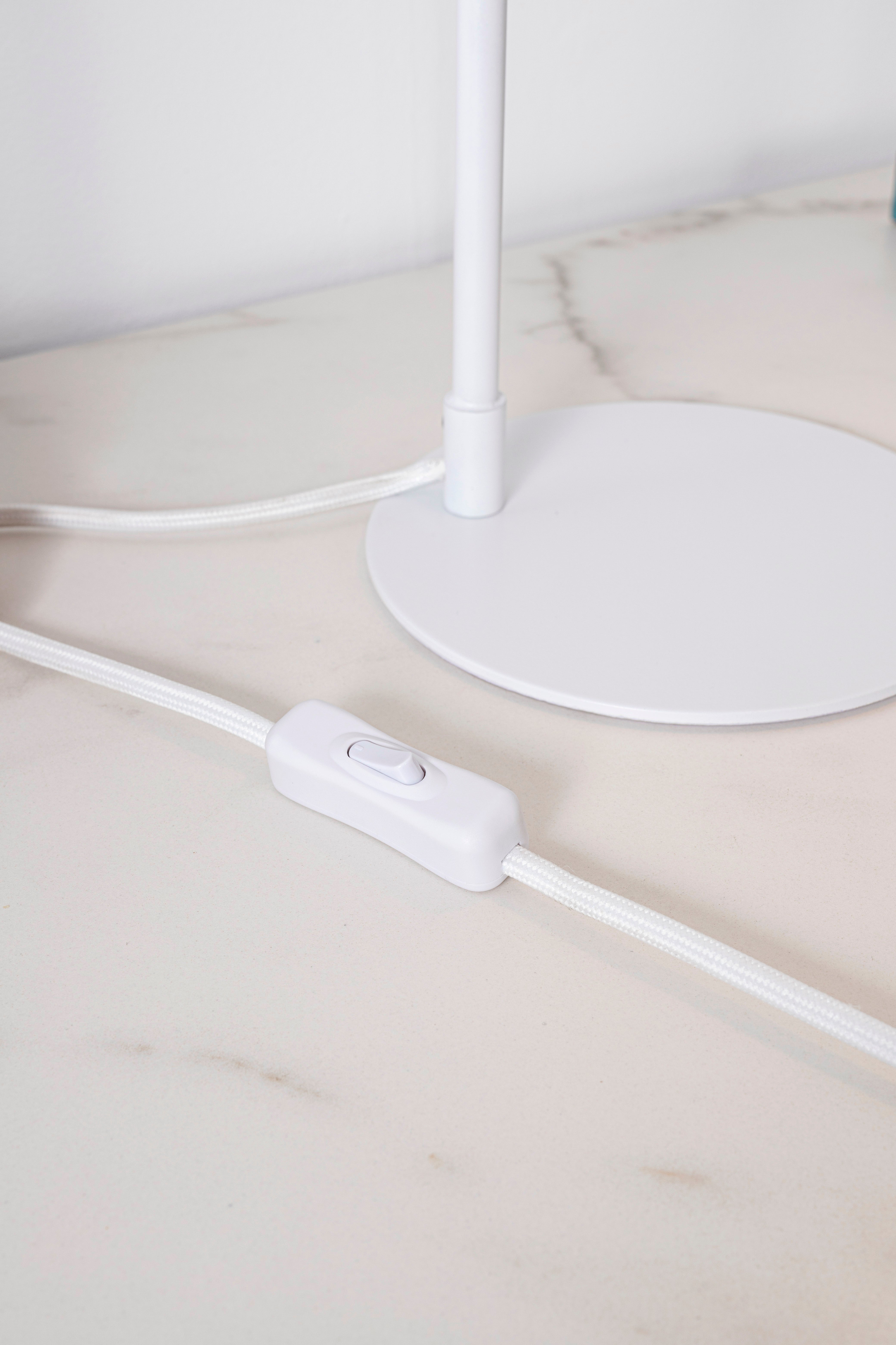 Fabricada íntegramente en metal de color blanco, esta lámpara ofrece una gran resistencia y durabilidad. Cuenta con un elegante cable trenzado de 1,5 metros que añade un detalle de calidad al conjunto. Es compatible con bombillas GU10 de hasta 33W, asegurando una presencia luminosa impecable y un mantenimiento sencillo gracias a la limpieza fácil de sus materiales metálicos.