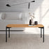 Cuenta con patas metálicas en acabado negro que aportan estabilidad y contraste, combinadas con un sobre de roble natural de 19 mm con canto biselado. Esta mezcla de materiales aporta calidez y un aspecto atemporal, fácil de integrar en ambientes modernos, nórdicos o contemporáneos.