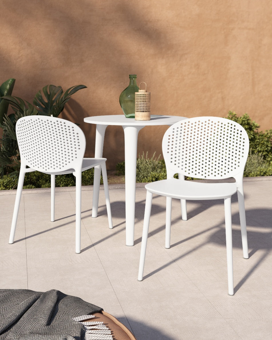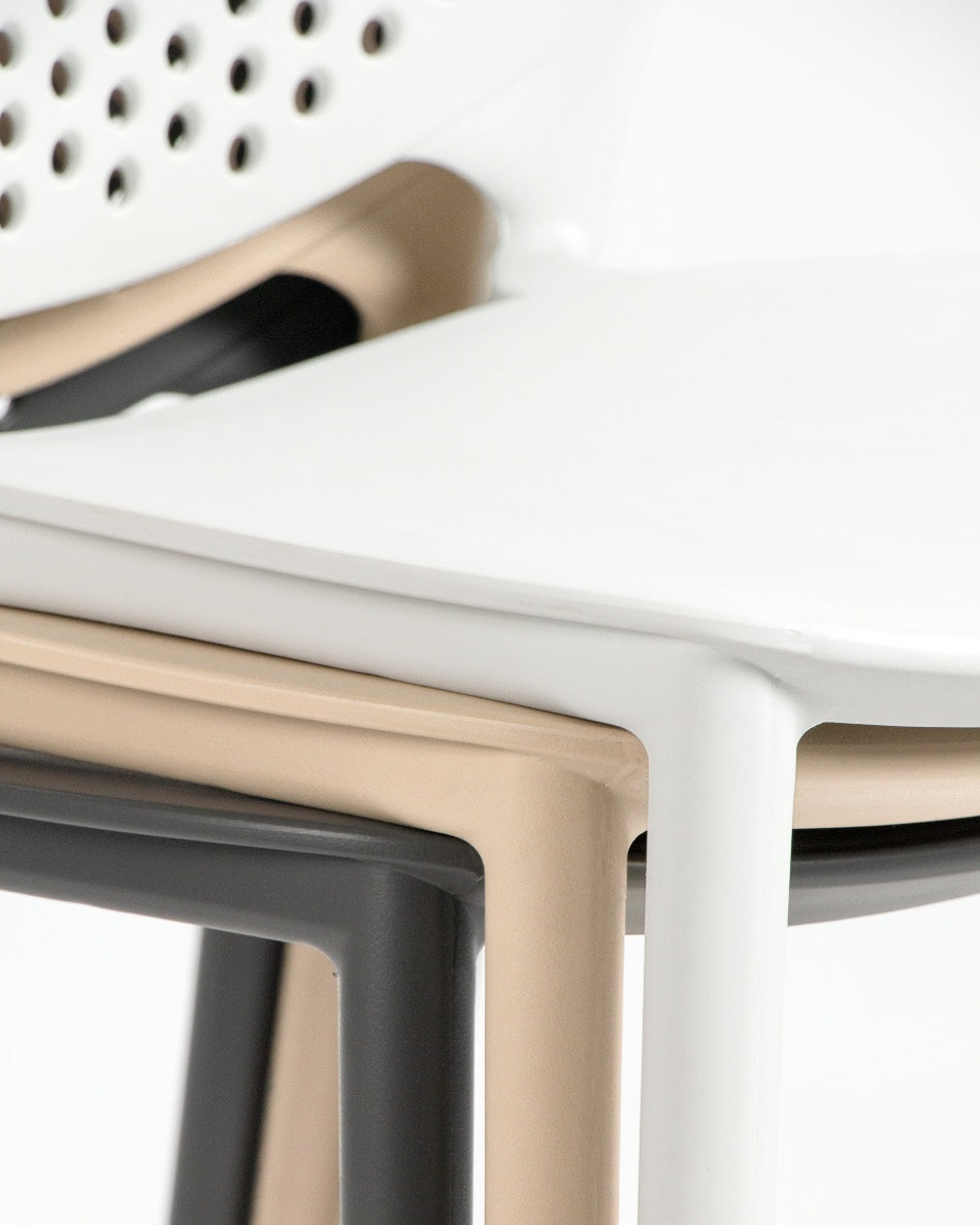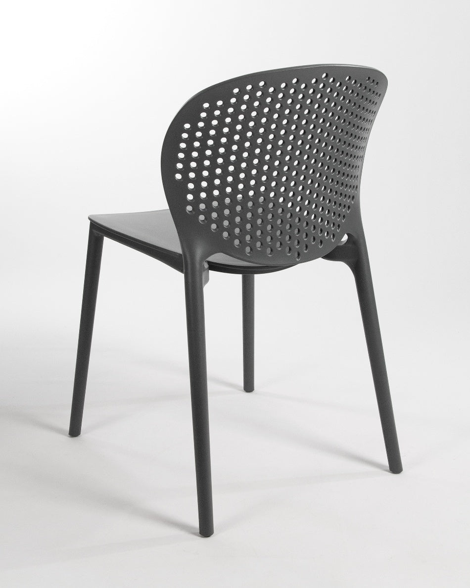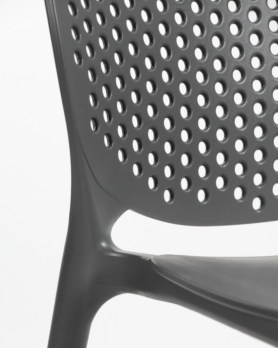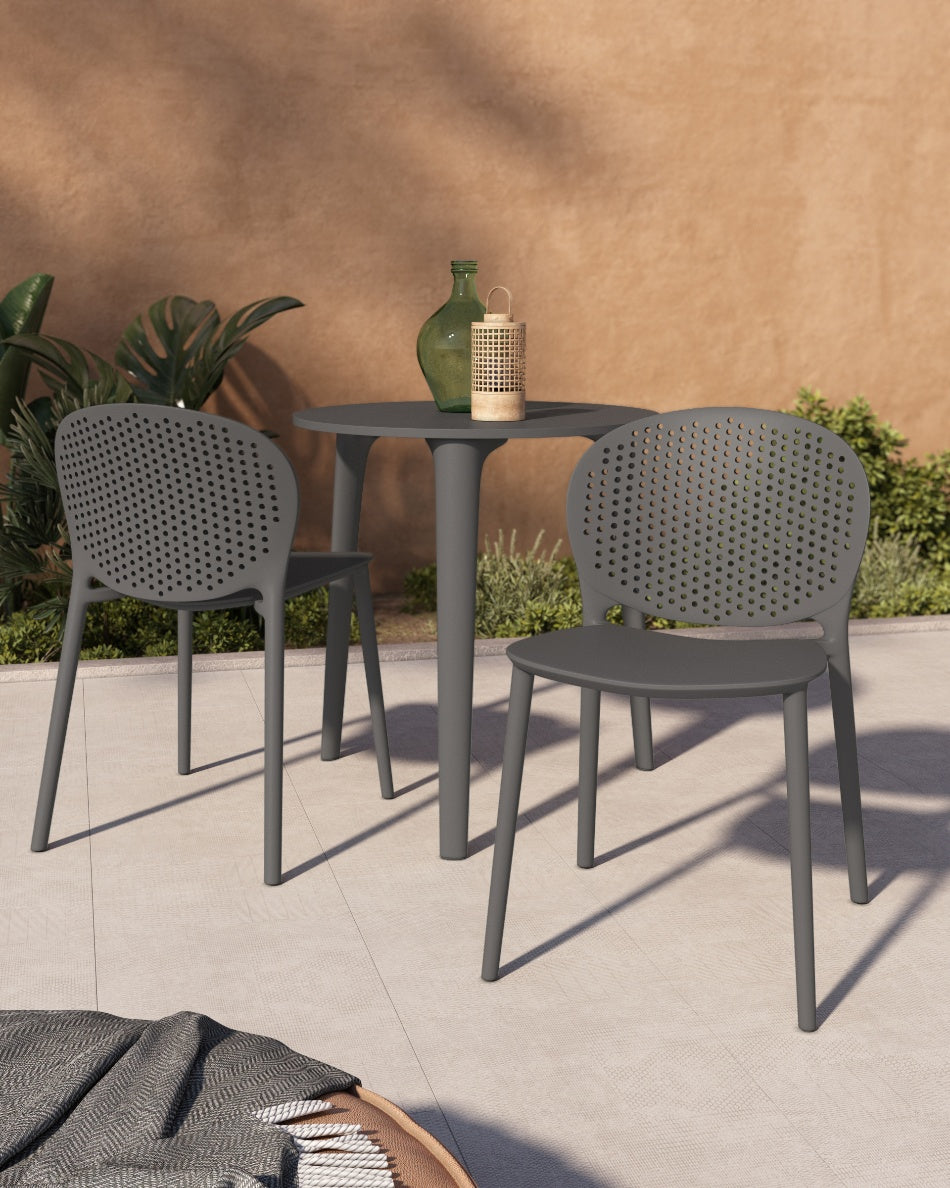 La silla Bogotá destaca por su diseño ligero y funcional, pensada para disfrutar del exterior con comodidad y una estética actual. Su respaldo perforado aporta frescura visual y favorece la ventilación, creando una sentada cómoda y adecuada para terrazas, patios o balcones.