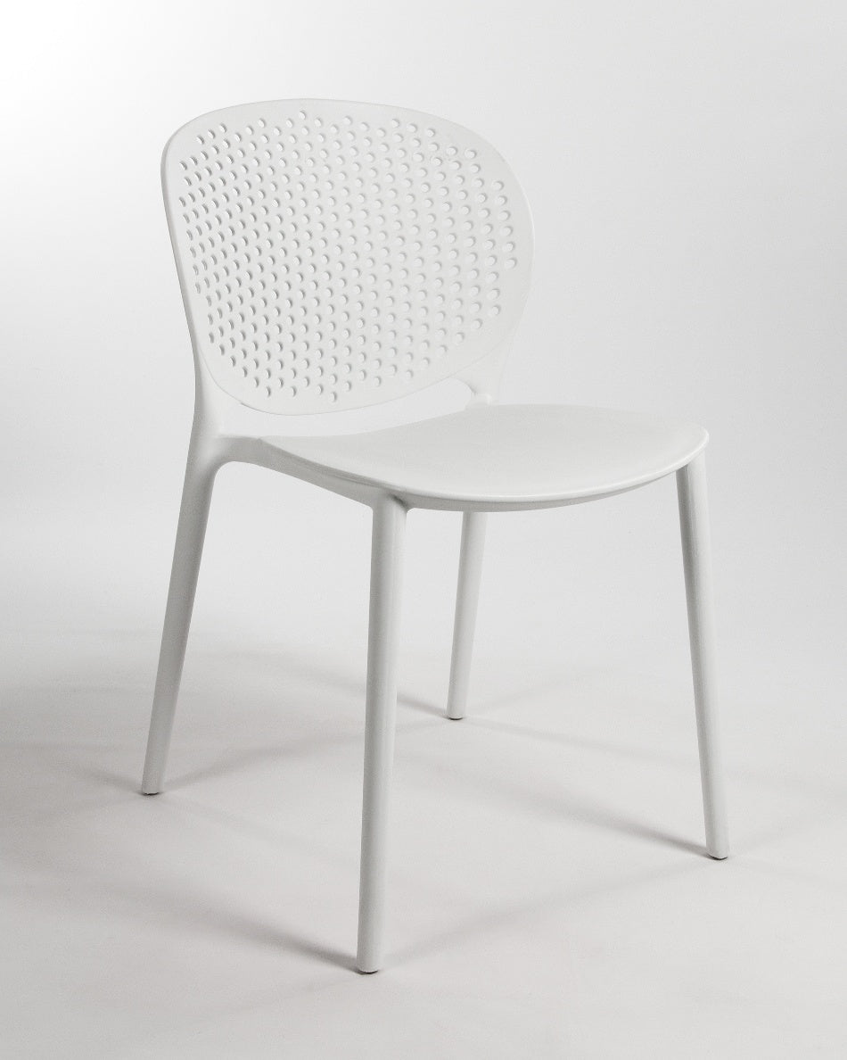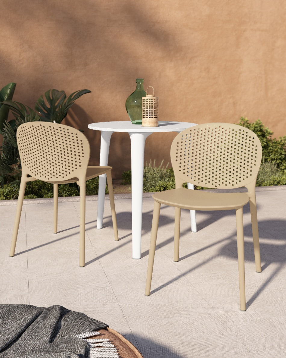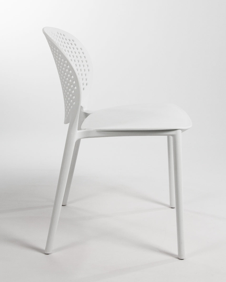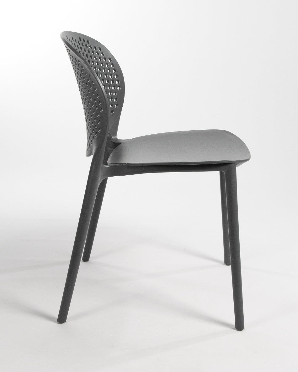 La silla Bogotá destaca por su diseño ligero y funcional, pensada para disfrutar del exterior con comodidad y una estética actual. Su respaldo perforado aporta frescura visual y favorece la ventilación, creando una sentada cómoda y adecuada para terrazas, patios o balcones.
