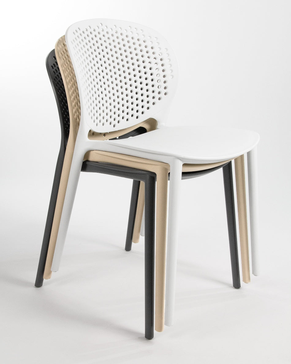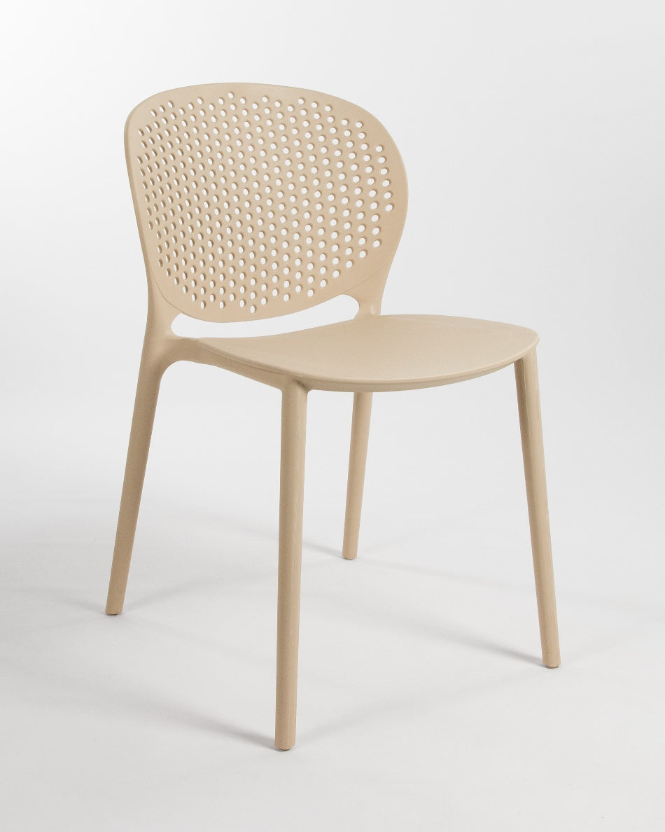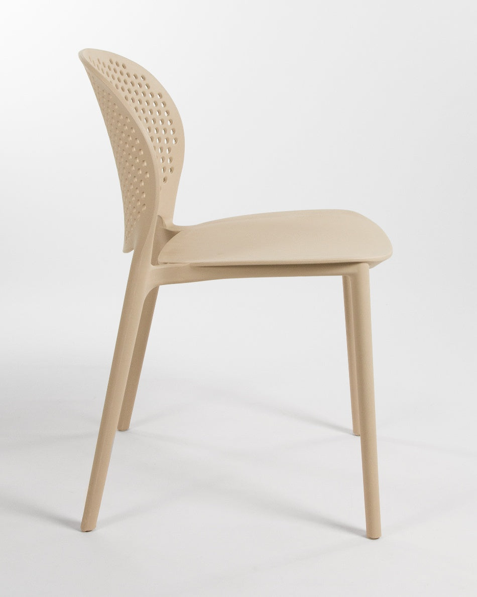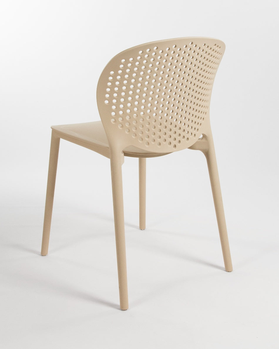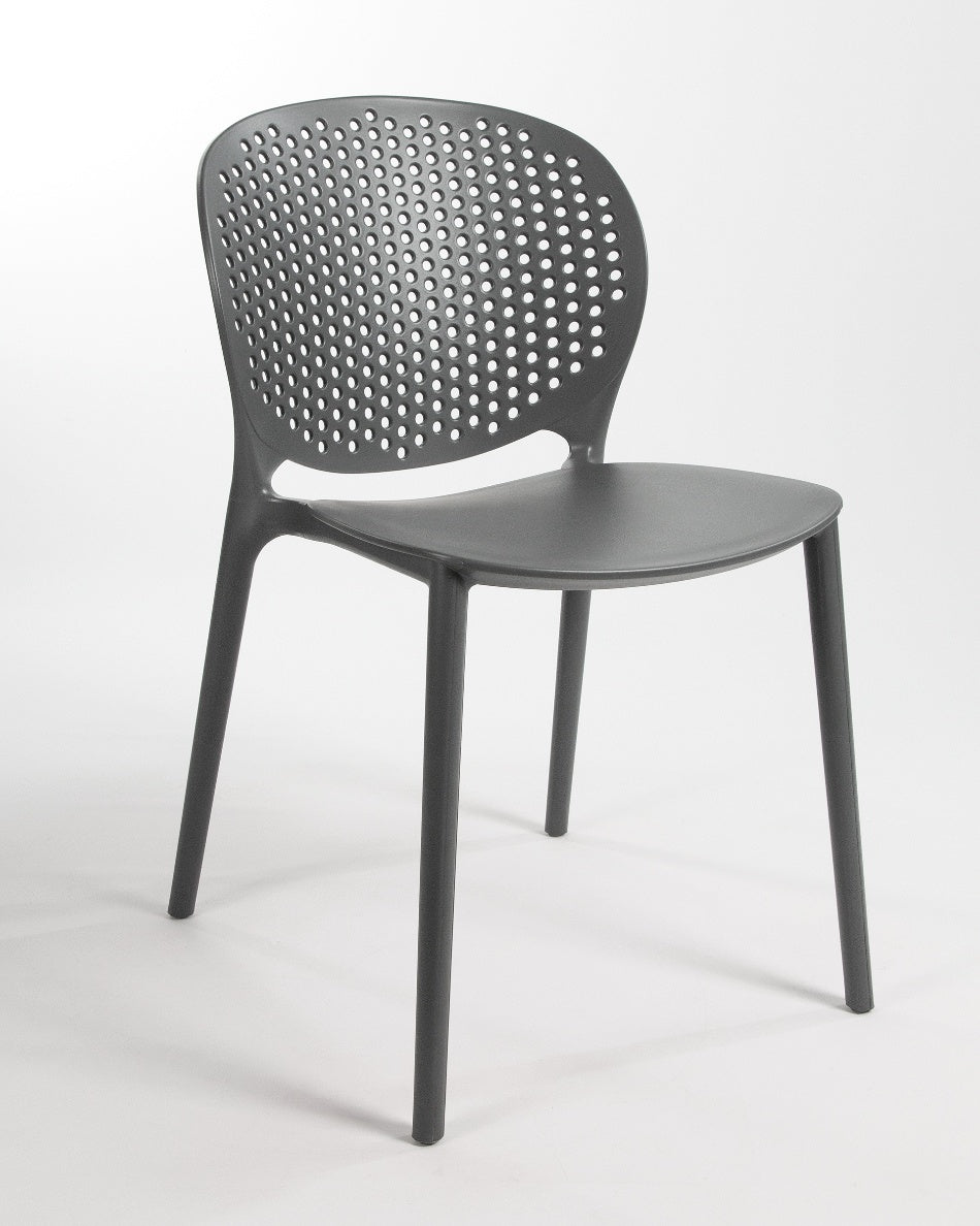 La silla Bogotá destaca por su diseño ligero y funcional, pensada para disfrutar del exterior con comodidad y una estética actual. Su respaldo perforado aporta frescura visual y favorece la ventilación, creando una sentada cómoda y adecuada para terrazas, patios o balcones.