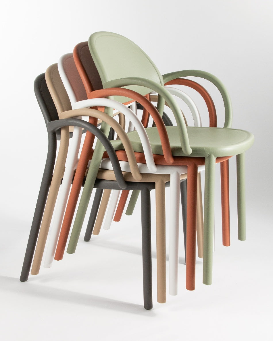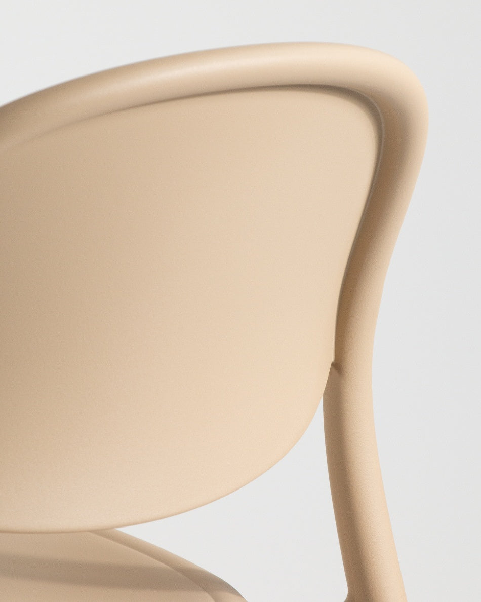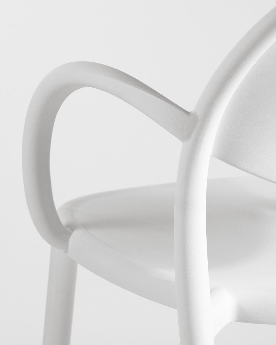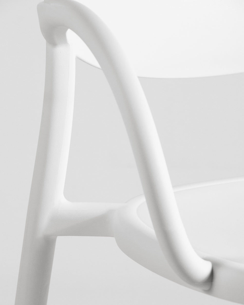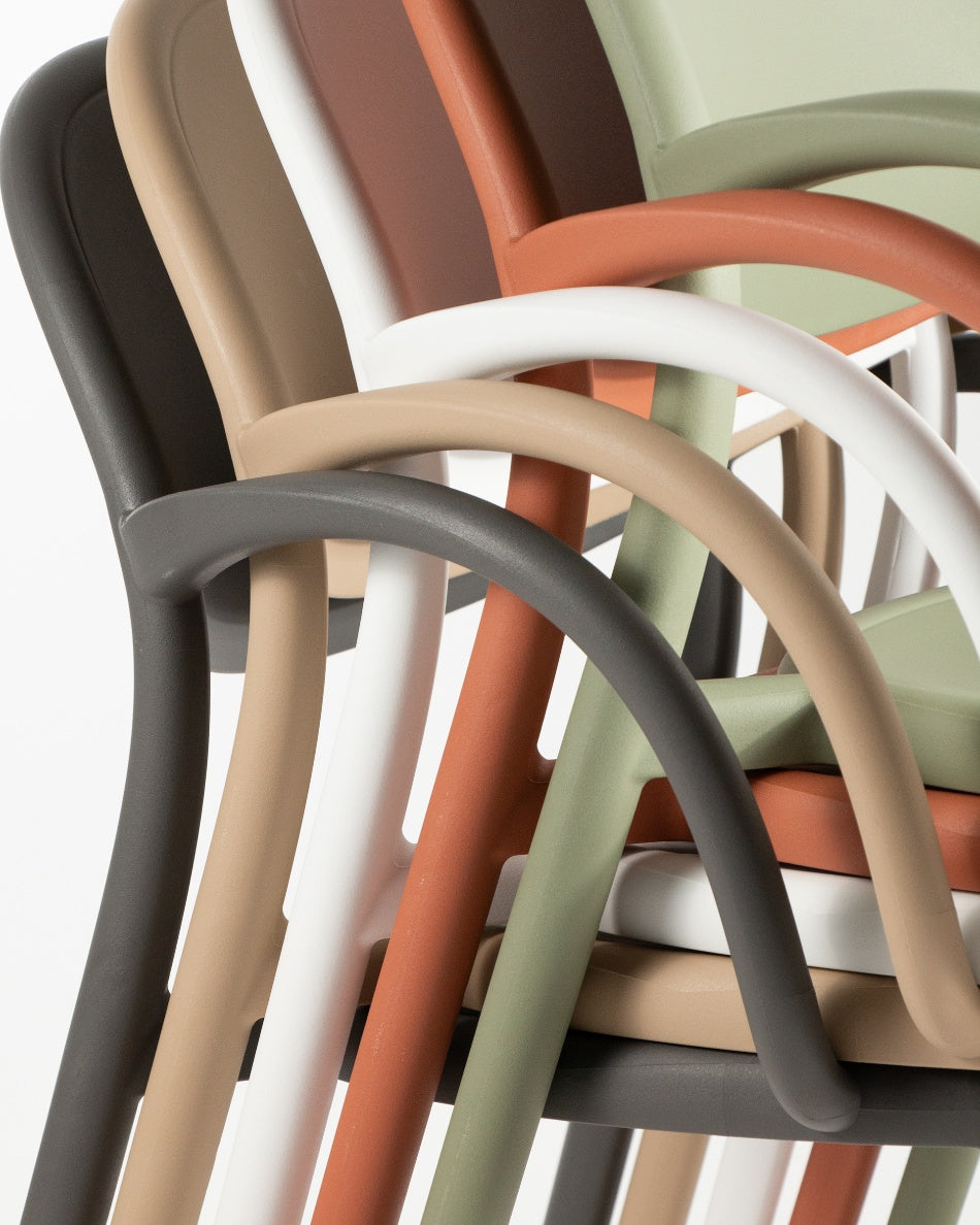 Fabricada en polipropileno, es resistente, fácil de limpiar y apilable, lo que facilita su almacenaje cuando no se utiliza. Apta para exterior, combina durabilidad y funcionalidad, adaptándose tanto a espacios domésticos como a entornos profesionales sin renunciar al diseño.