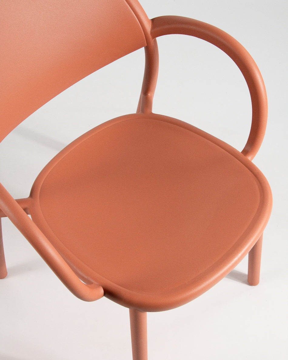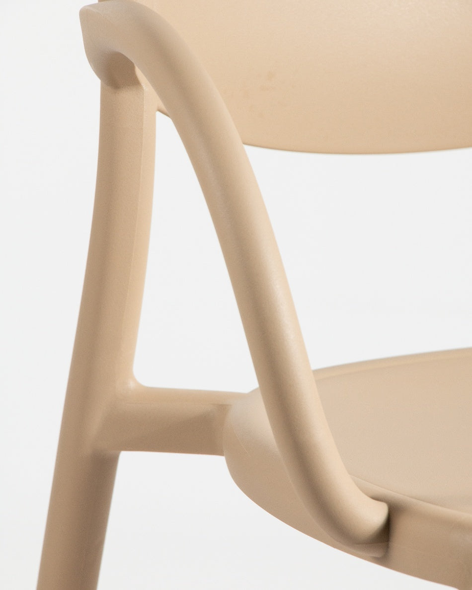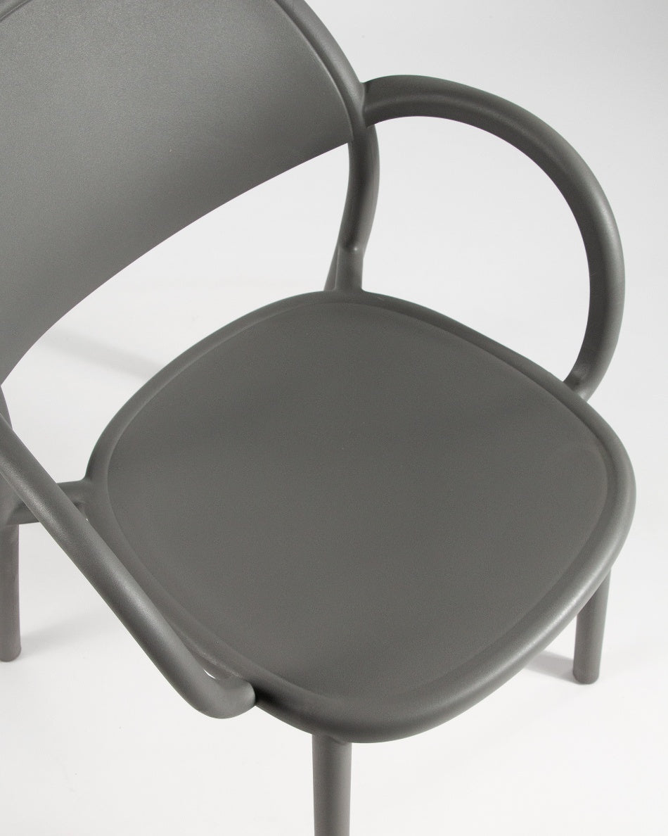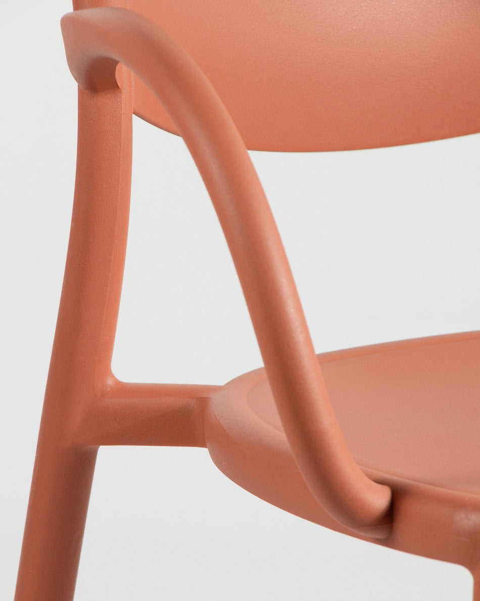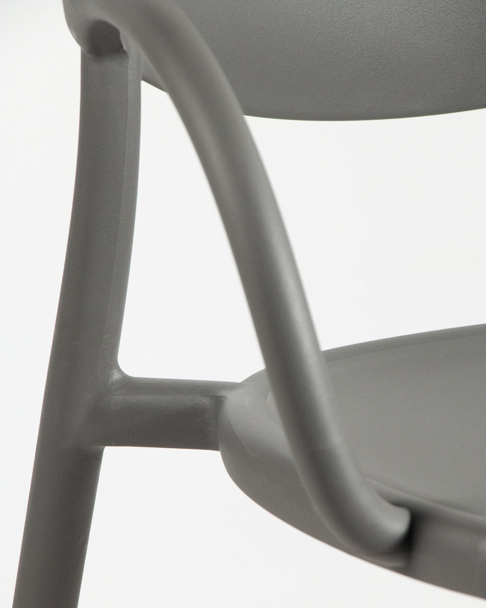 Fabricada en polipropileno, es resistente, fácil de limpiar y apilable, lo que facilita su almacenaje cuando no se utiliza. Apta para exterior, combina durabilidad y funcionalidad, adaptándose tanto a espacios domésticos como a entornos profesionales sin renunciar al diseño.