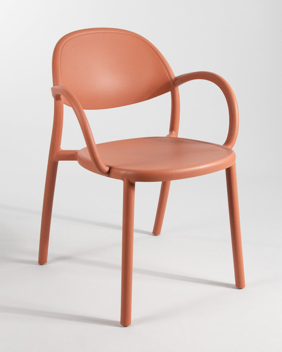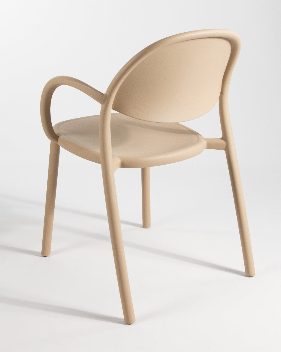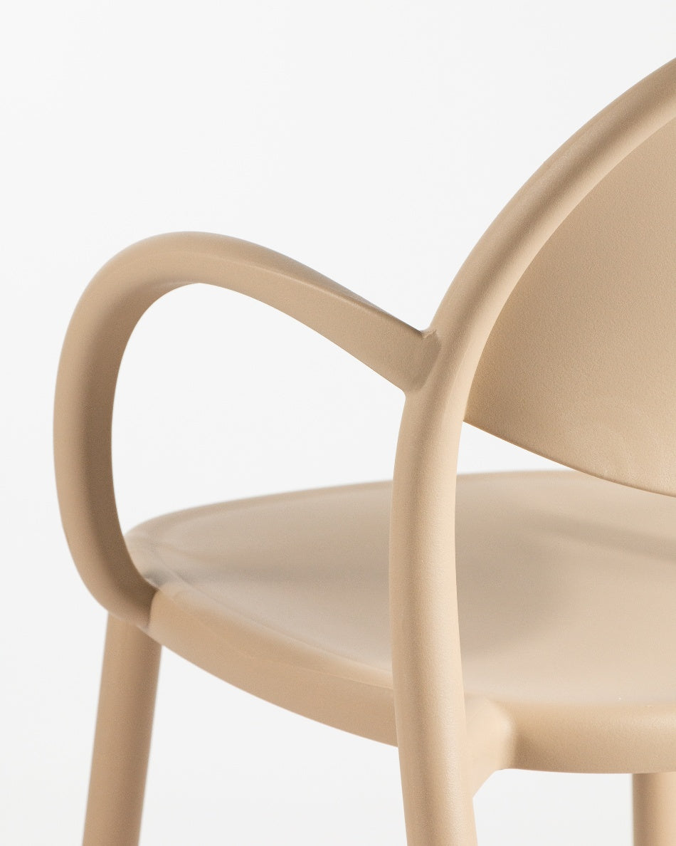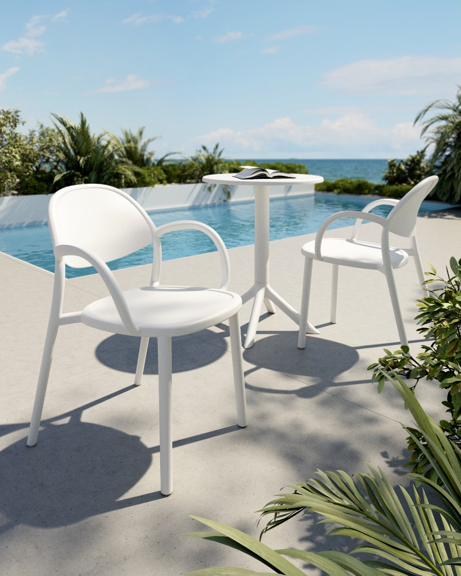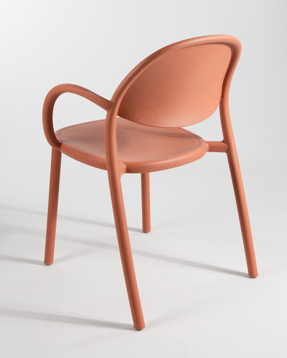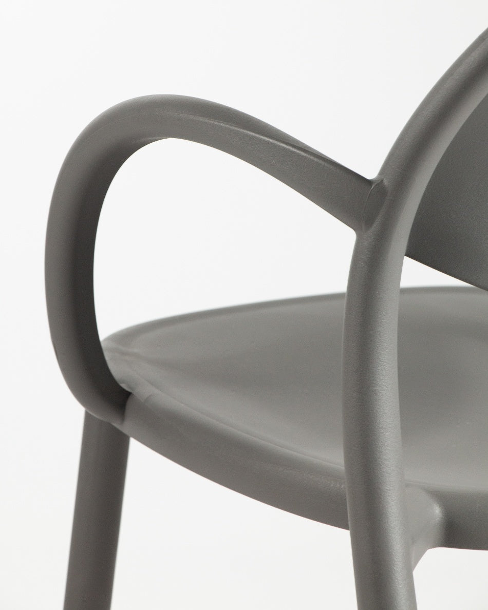 Fabricada en polipropileno, es resistente, fácil de limpiar y apilable, lo que facilita su almacenaje cuando no se utiliza. Apta para exterior, combina durabilidad y funcionalidad, adaptándose tanto a espacios domésticos como a entornos profesionales sin renunciar al diseño.