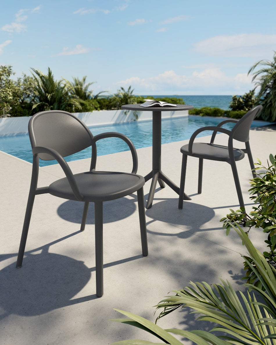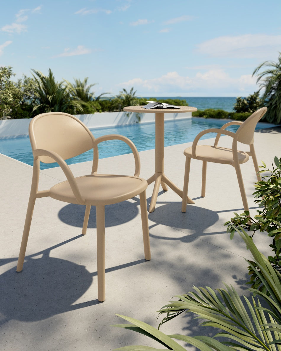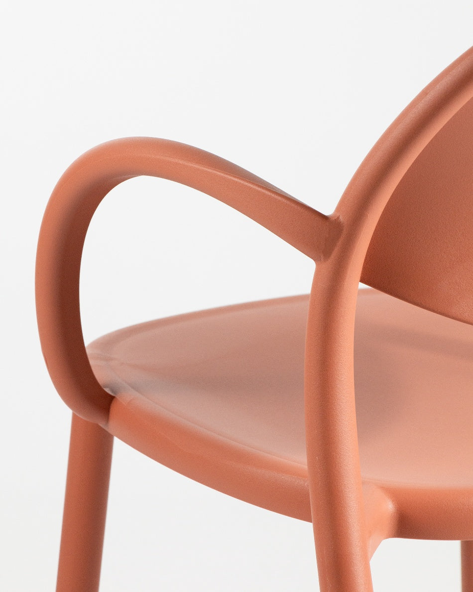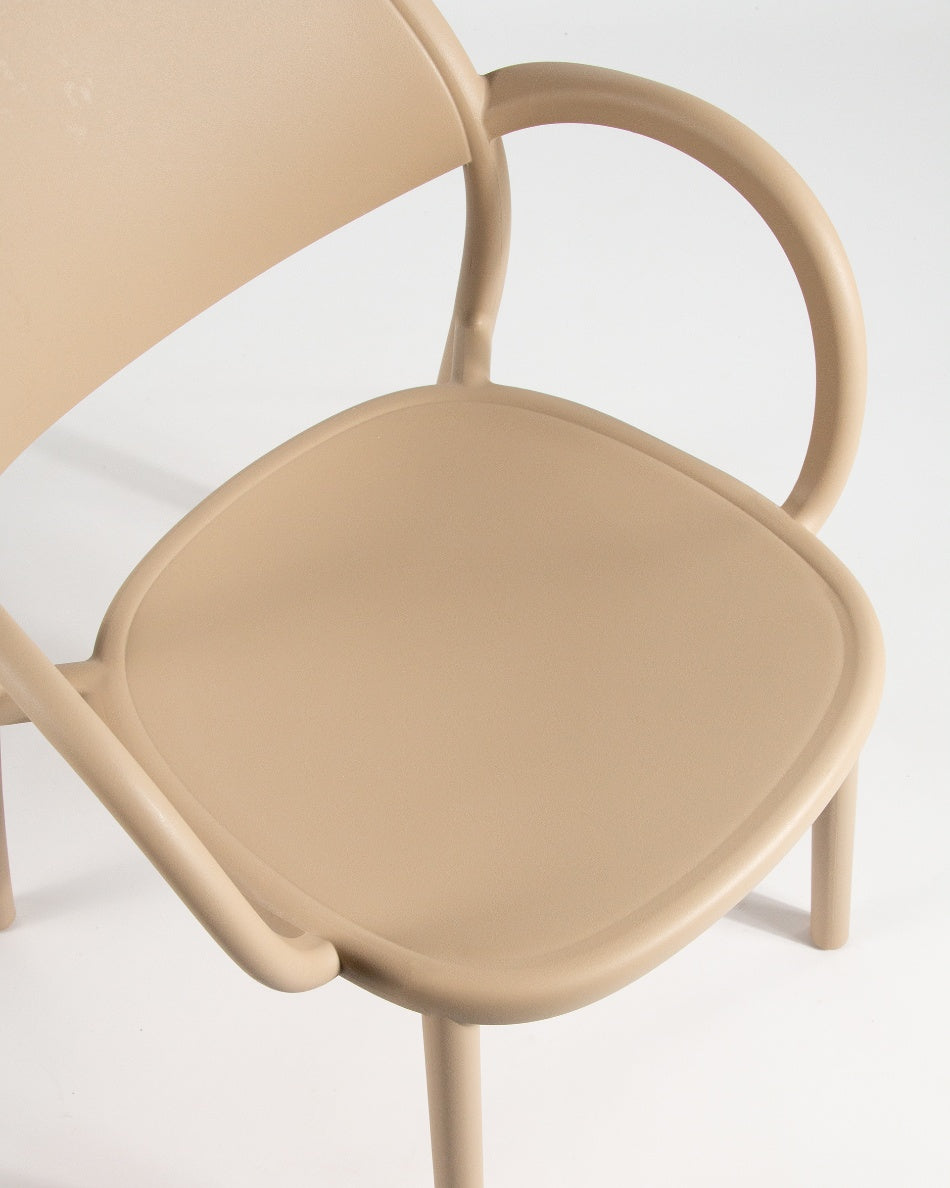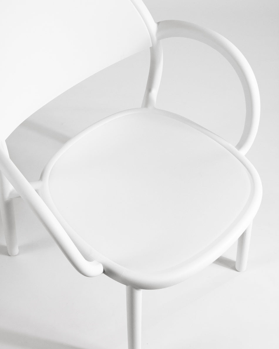 Fabricada en polipropileno, es resistente, fácil de limpiar y apilable, lo que facilita su almacenaje cuando no se utiliza. Apta para exterior, combina durabilidad y funcionalidad, adaptándose tanto a espacios domésticos como a entornos profesionales sin renunciar al diseño.
