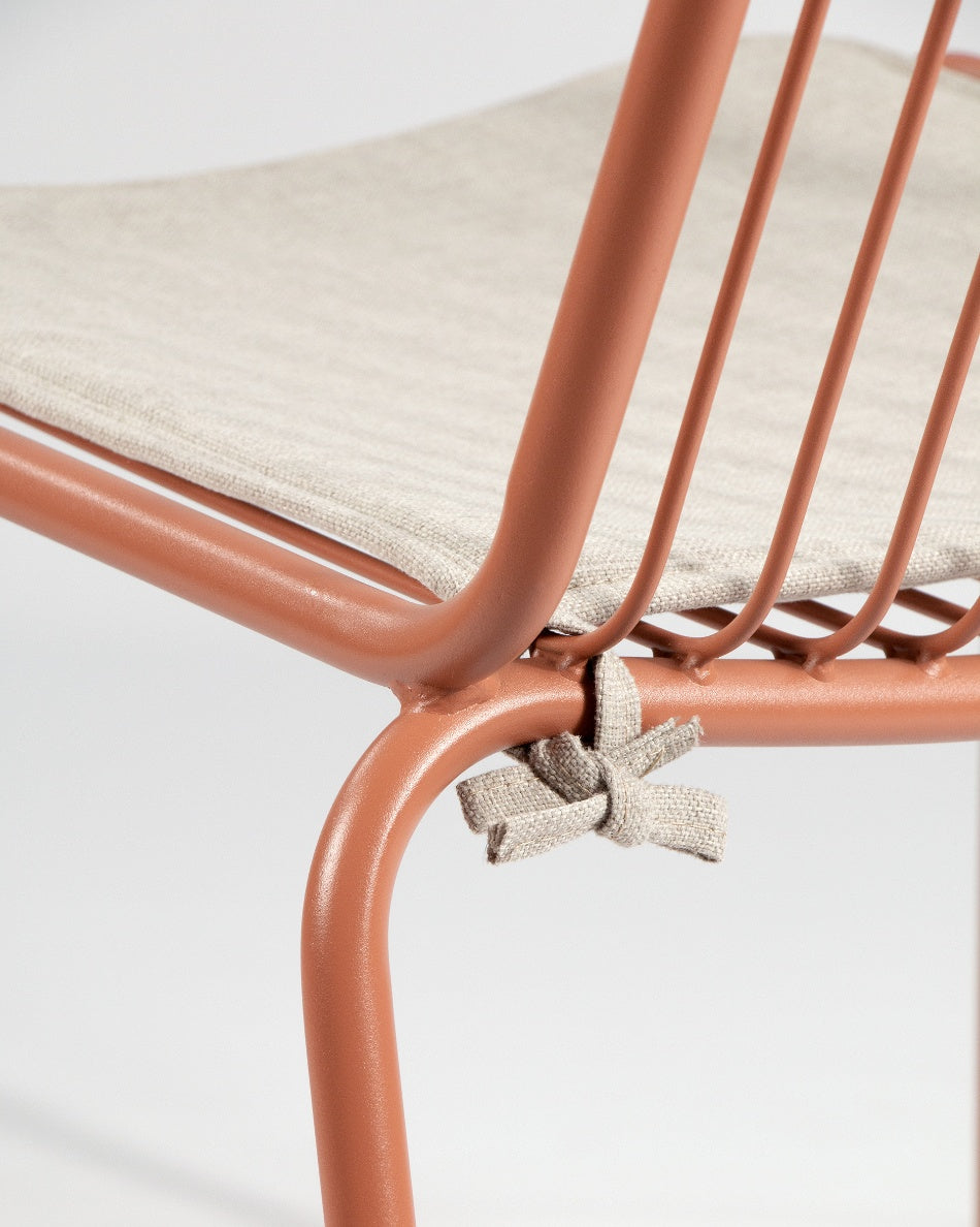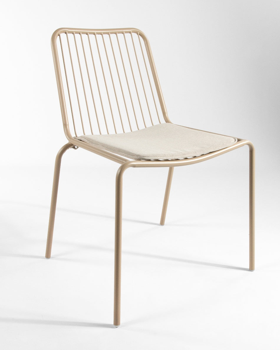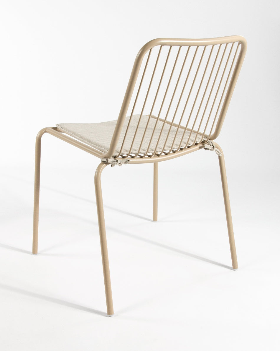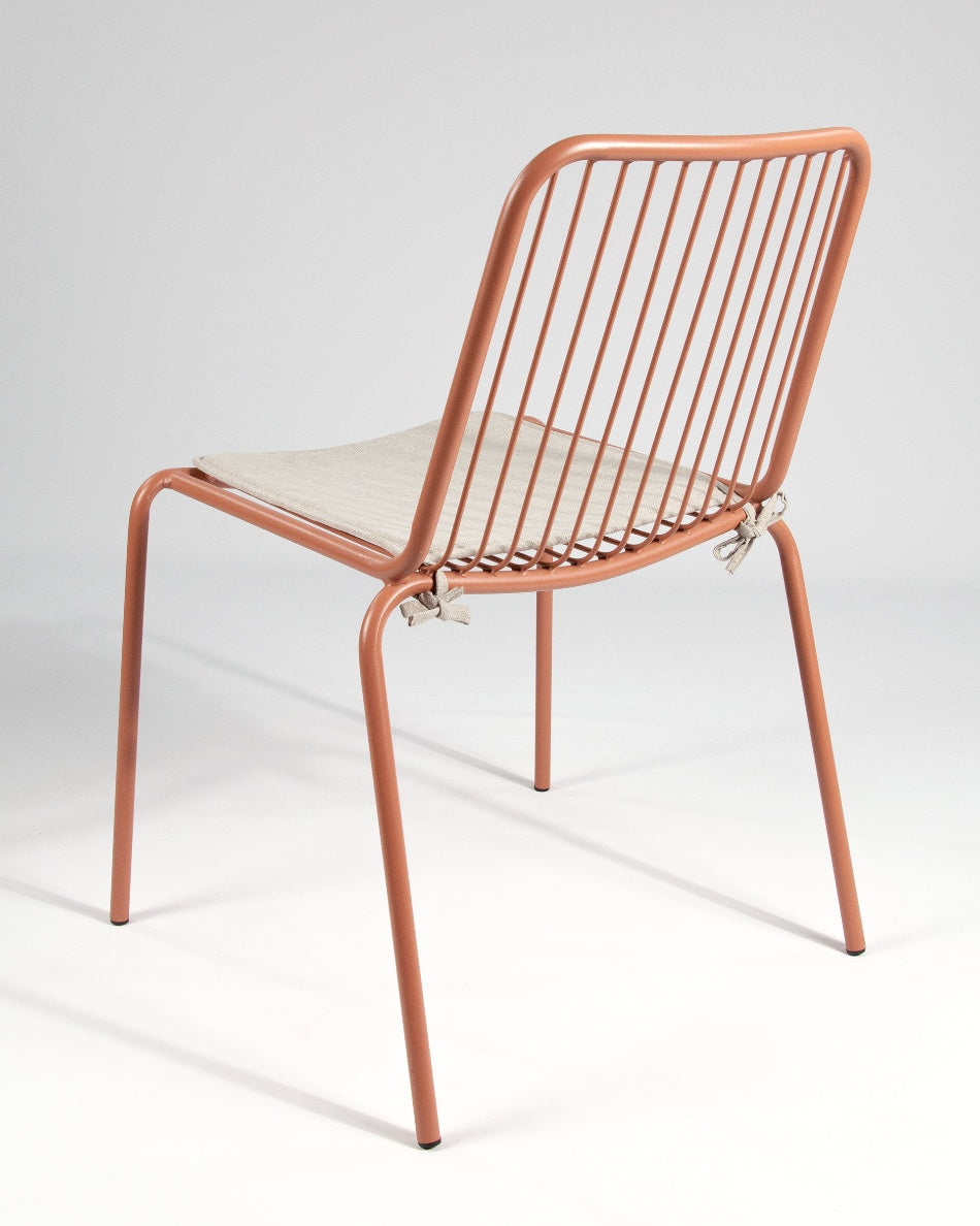 La silla Aloha presenta un diseño fresco y ligero, pensada para disfrutar del exterior con comodidad y estilo. Su estructura metálica y líneas abiertas aportan una estética actual que encaja con naturalidad en terrazas, jardines o zonas junto a la piscina.