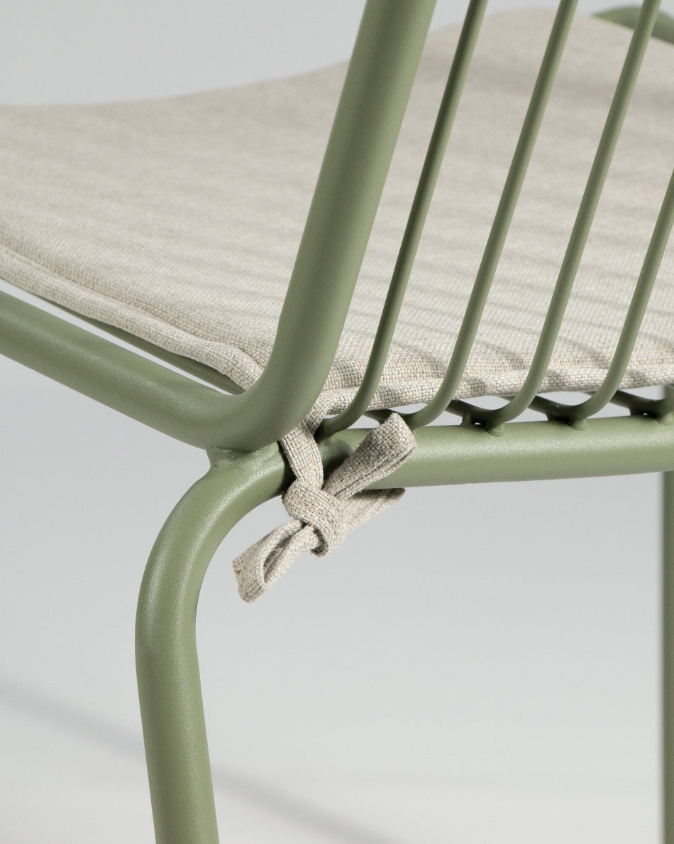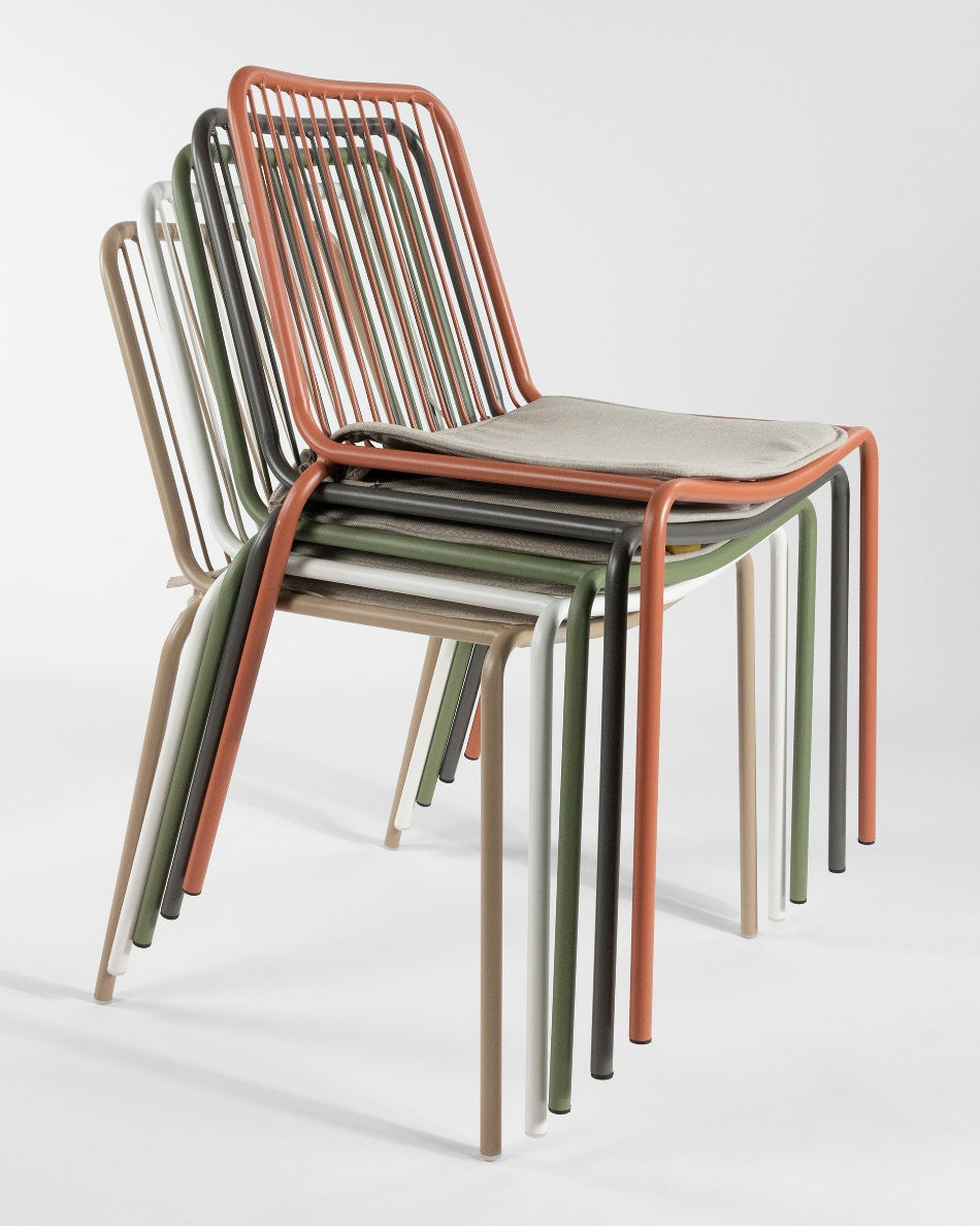 Incluye un cojín que mejora la comodidad en la sentada, mientras que su diseño apilable facilita el almacenaje cuando no se utiliza. Fabricada con materiales resistentes, es apta para exterior y combina funcionalidad y ligereza, adaptándose tanto a espacios domésticos como a entornos profesionales.