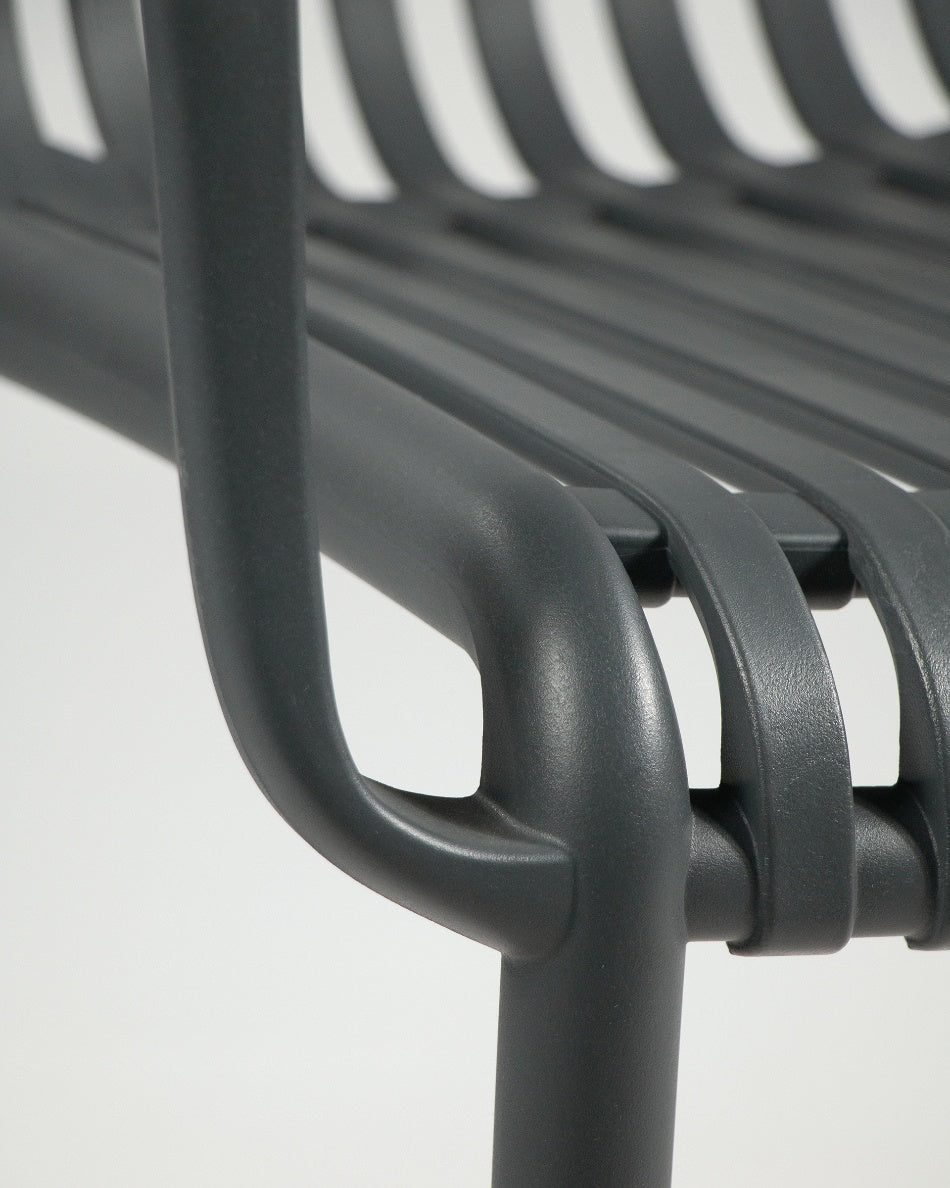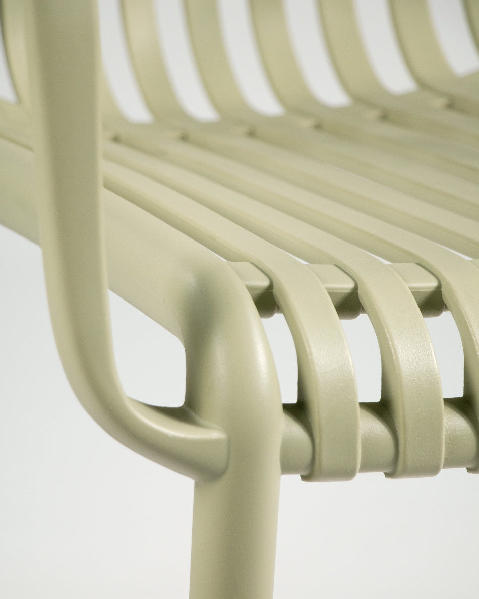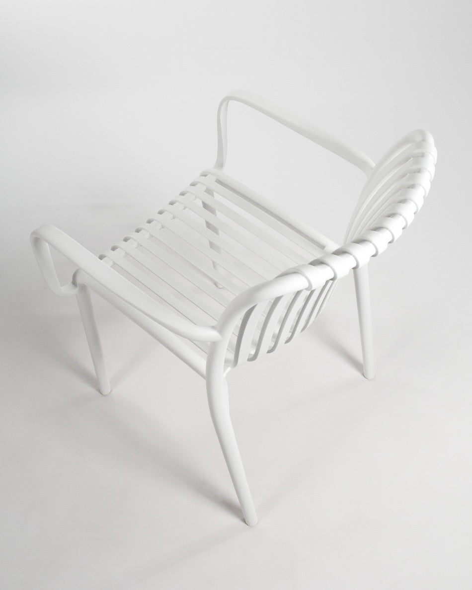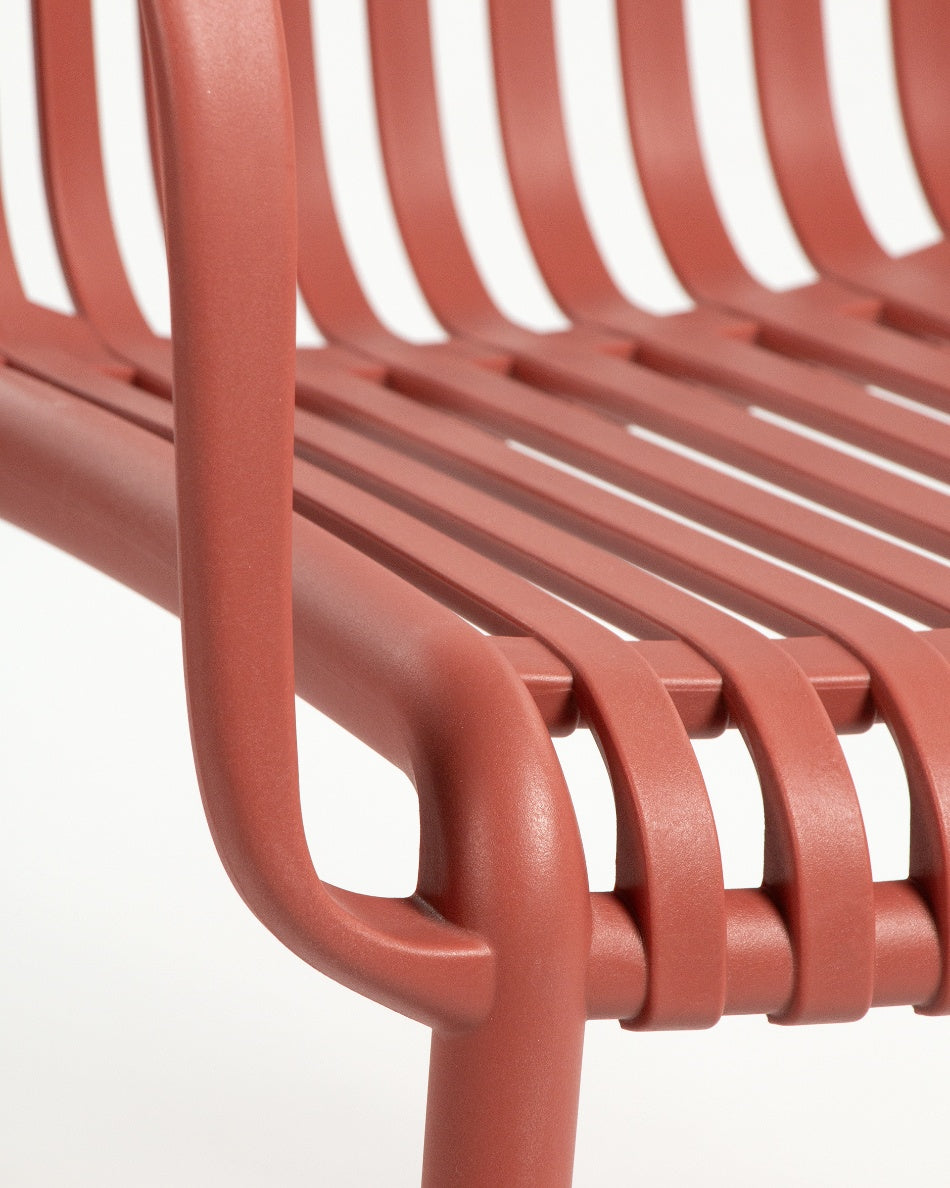 La silla Habana presenta un diseño fresco y actual, con un respaldo de lamas que aporta ligereza visual y un aire desenfadado. Su silueta envolvente con apoyabrazos integrados la convierte en una opción cómoda y atractiva para terrazas, jardines o zonas de comedor al aire libre.