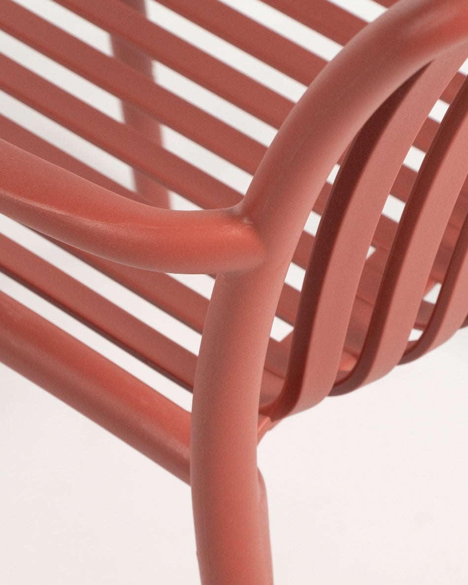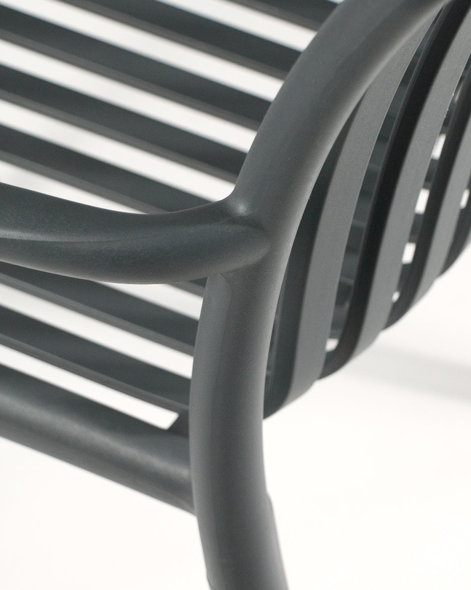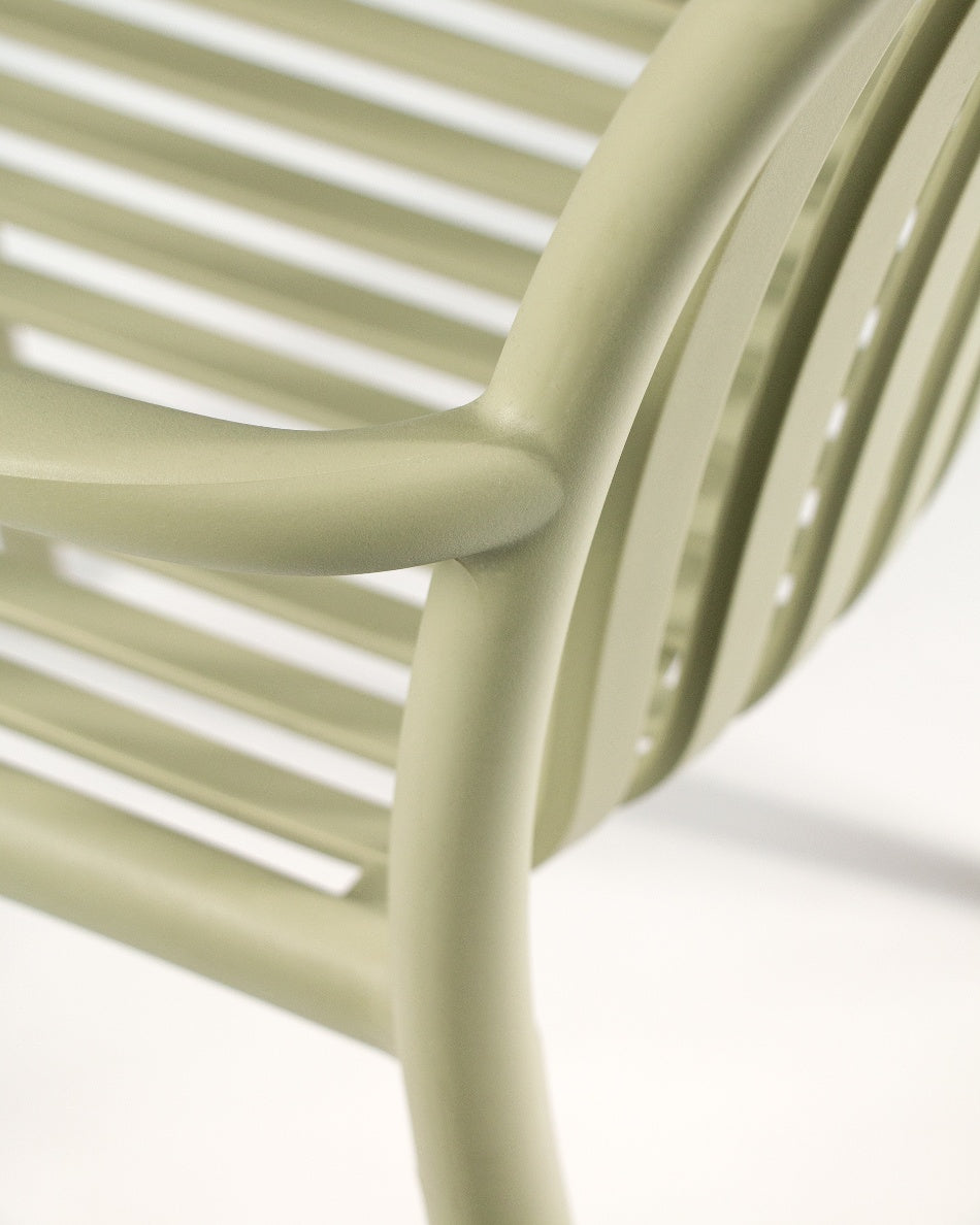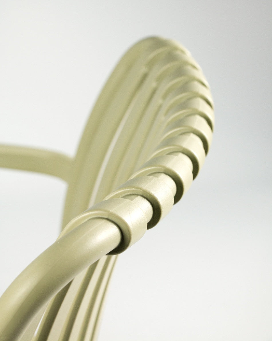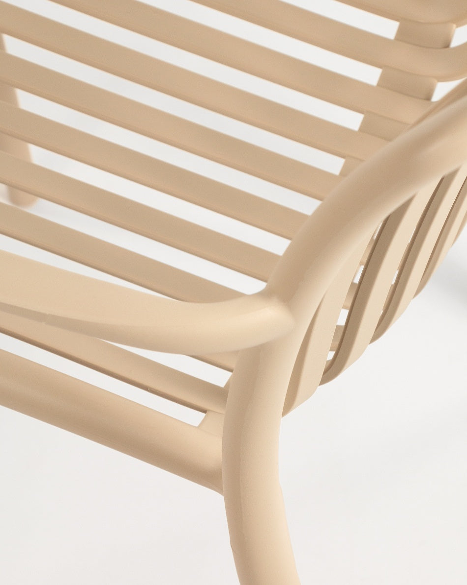Fabricada en polipropileno, es resistente y fácil de mantener, además de ser apilable, lo que facilita su almacenaje cuando no se utiliza. Apta para exterior, combina funcionalidad y estilo, adaptándose tanto a espacios domésticos como a entornos contract.