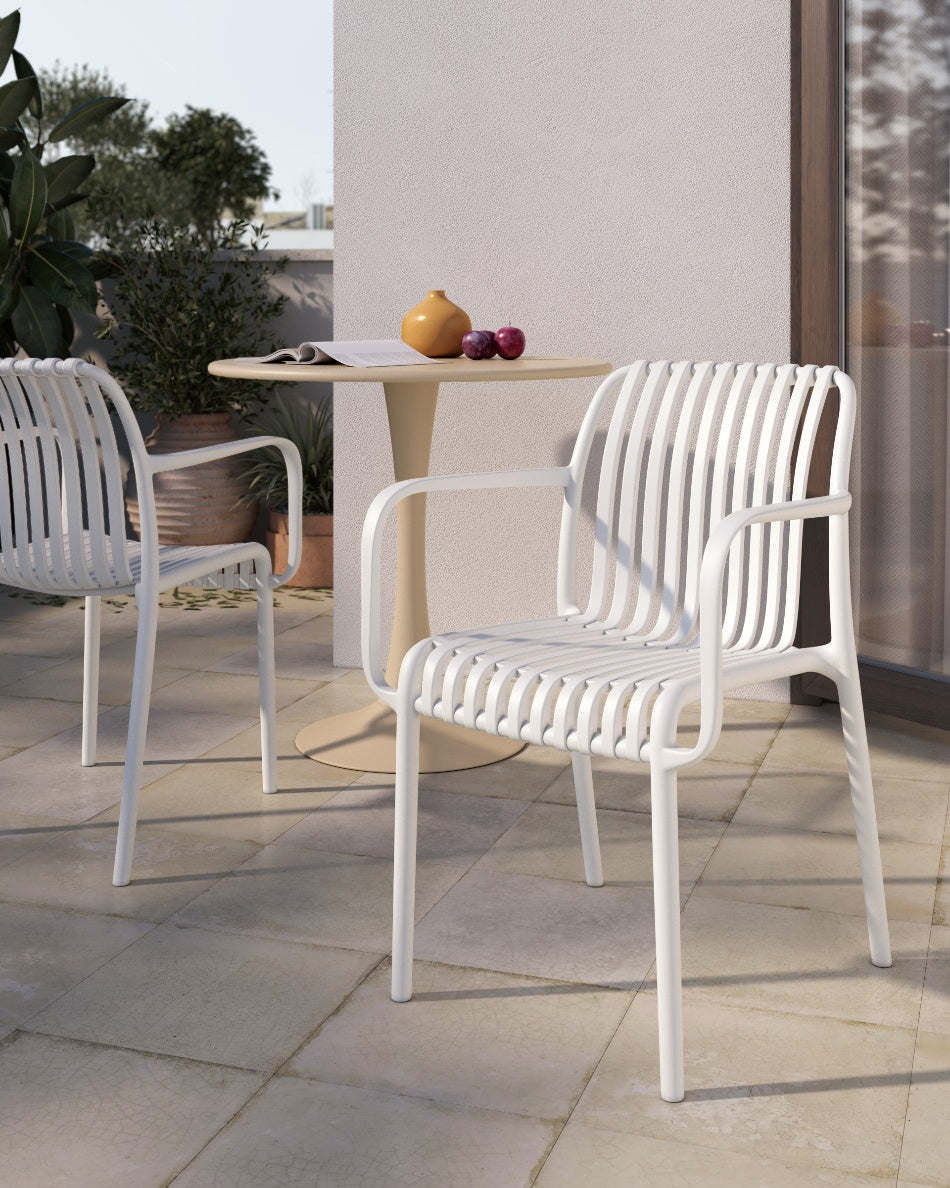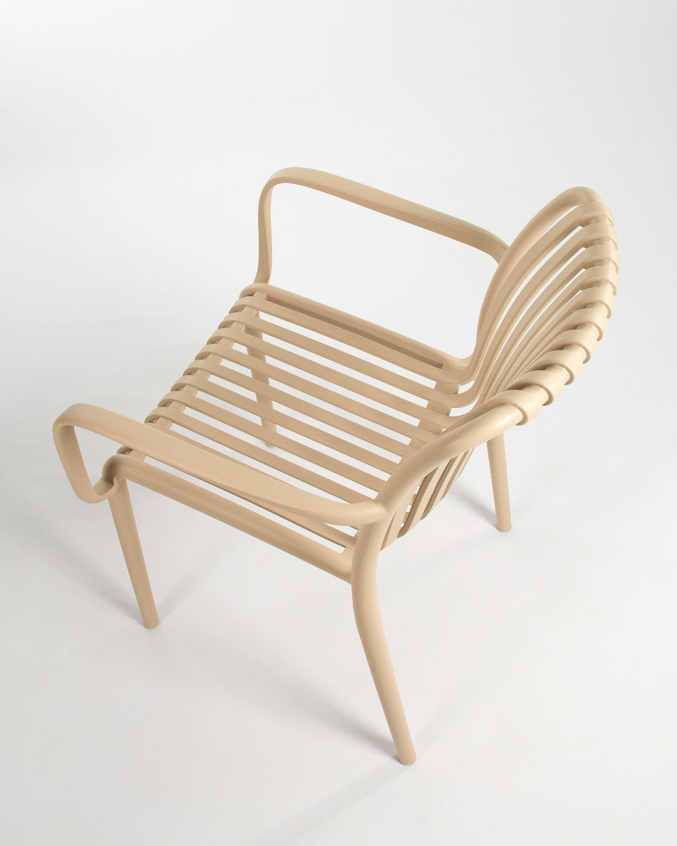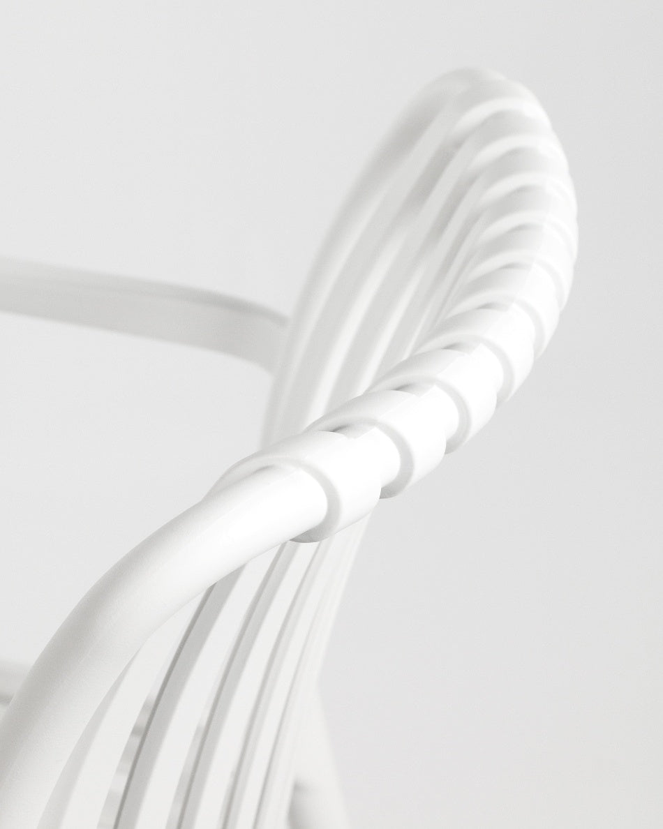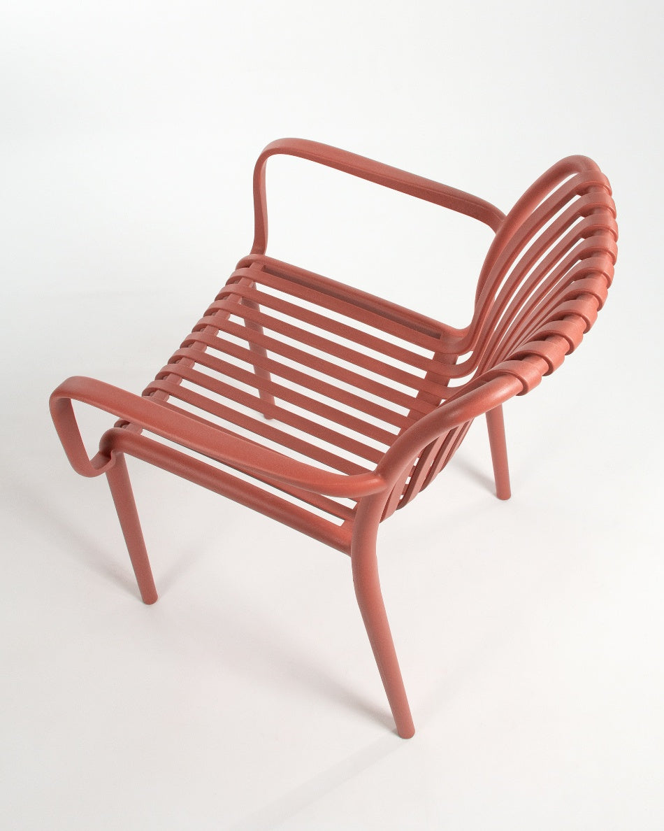 Fabricada en polipropileno, es resistente y fácil de mantener, además de ser apilable, lo que facilita su almacenaje cuando no se utiliza. Apta para exterior, combina funcionalidad y estilo, adaptándose tanto a espacios domésticos como a entornos contract.