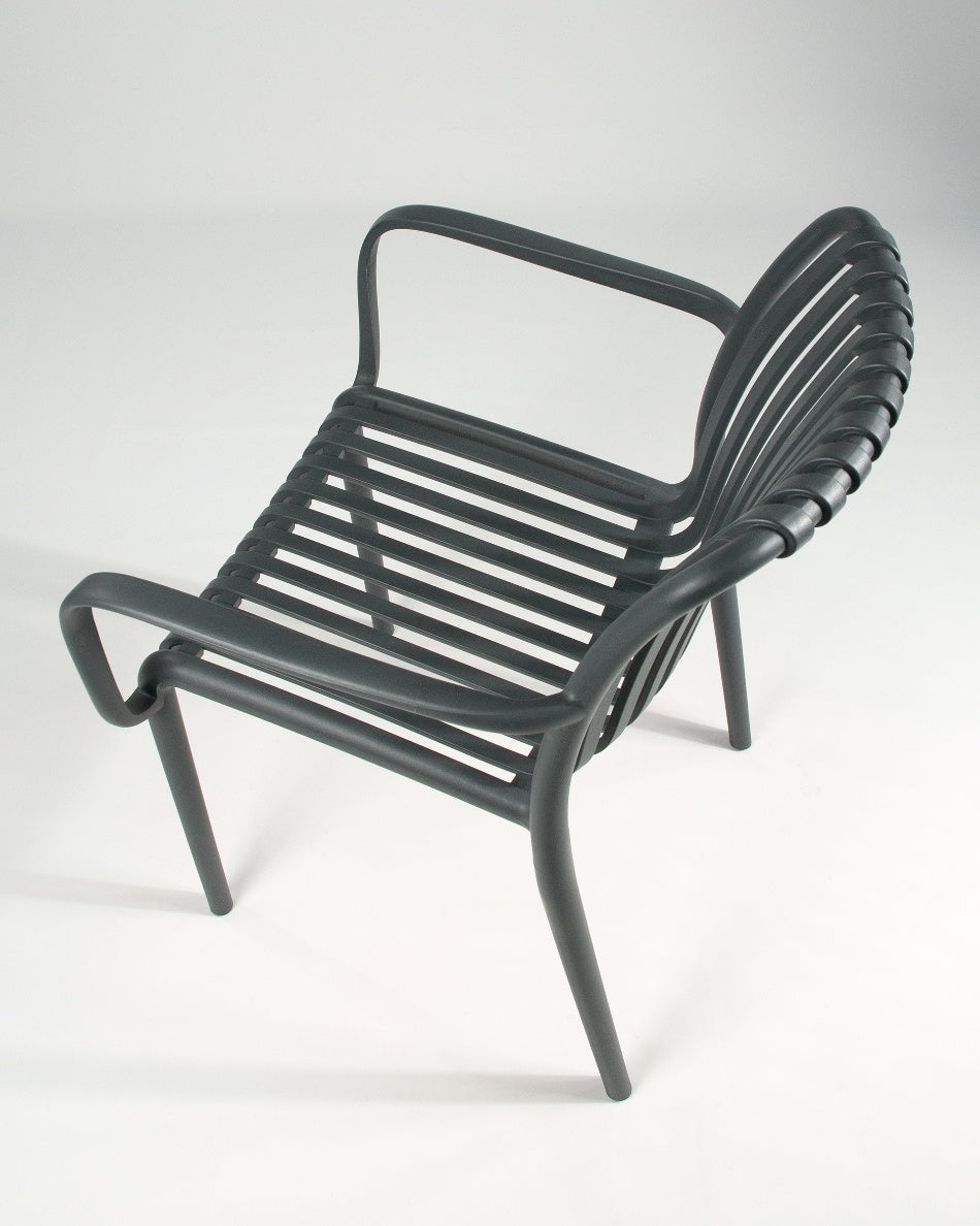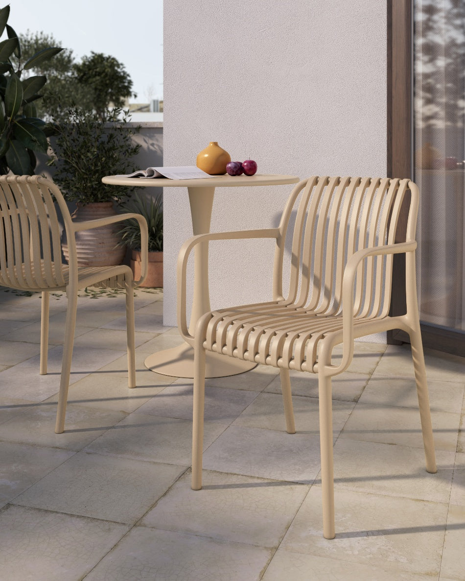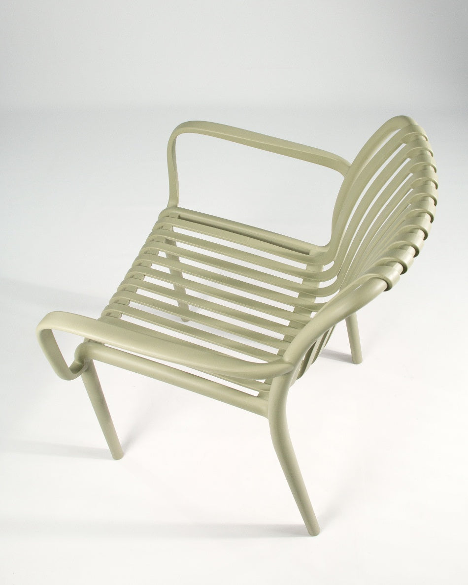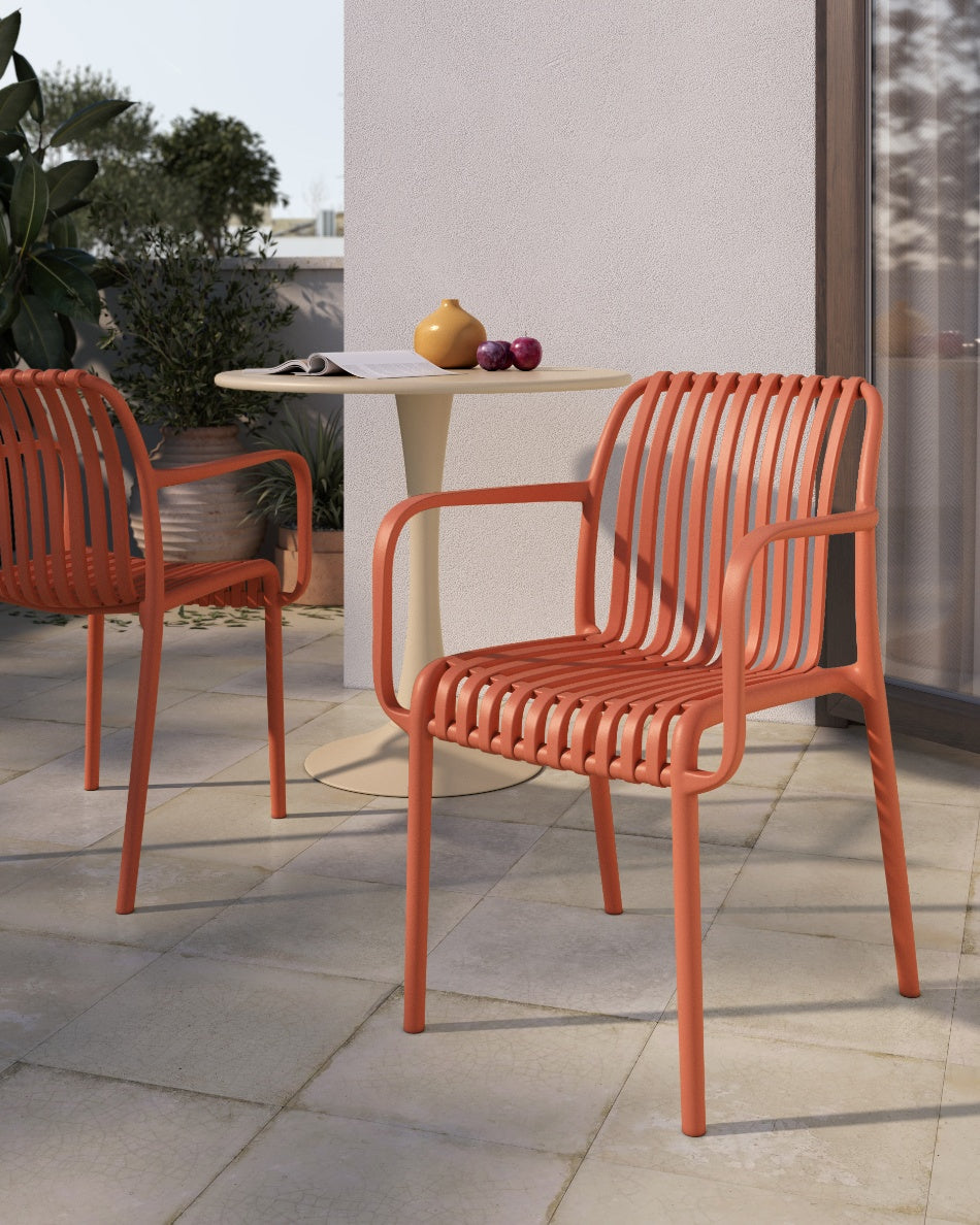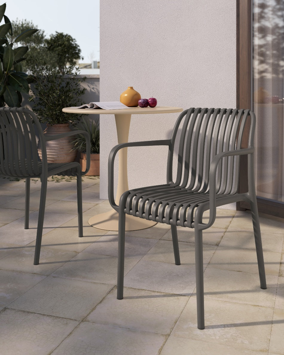 Fabricada en polipropileno, es resistente y fácil de mantener, además de ser apilable, lo que facilita su almacenaje cuando no se utiliza. Apta para exterior, combina funcionalidad y estilo, adaptándose tanto a espacios domésticos como a entornos contract.