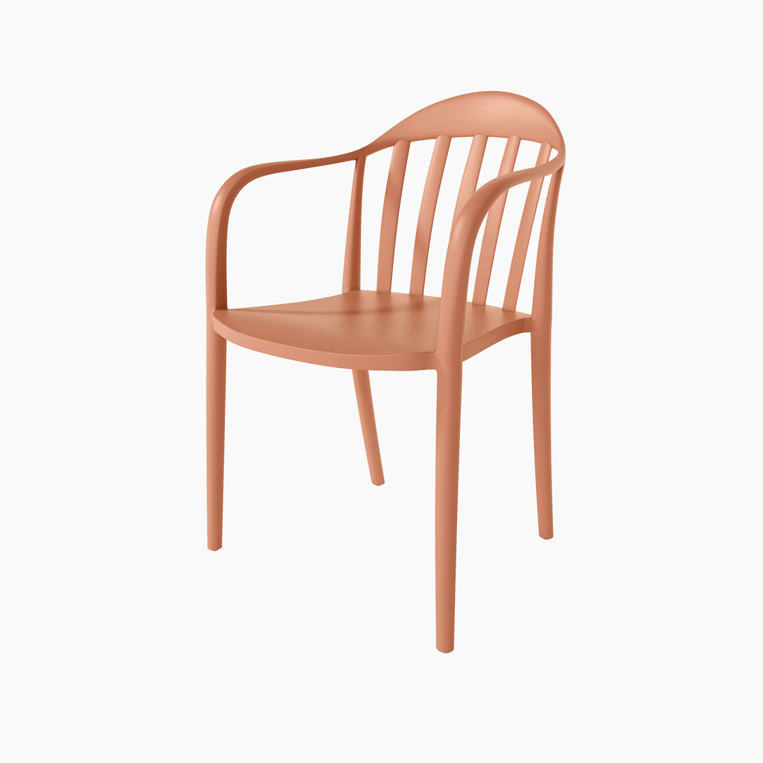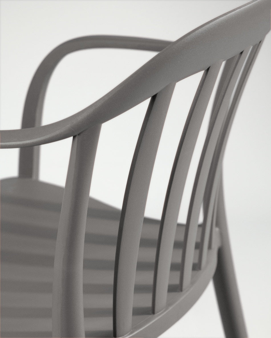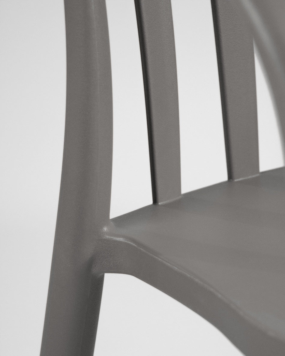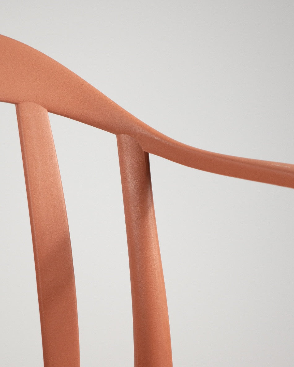 La silla Malibú presenta un diseño ligero y desenfadado, pensada para disfrutar del exterior con comodidad y un estilo actual. Su respaldo curvado con varillas aporta una estética fresca y abierta que encaja perfectamente en terrazas, patios o zonas de comedor al aire libre.