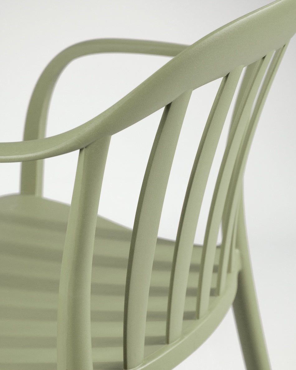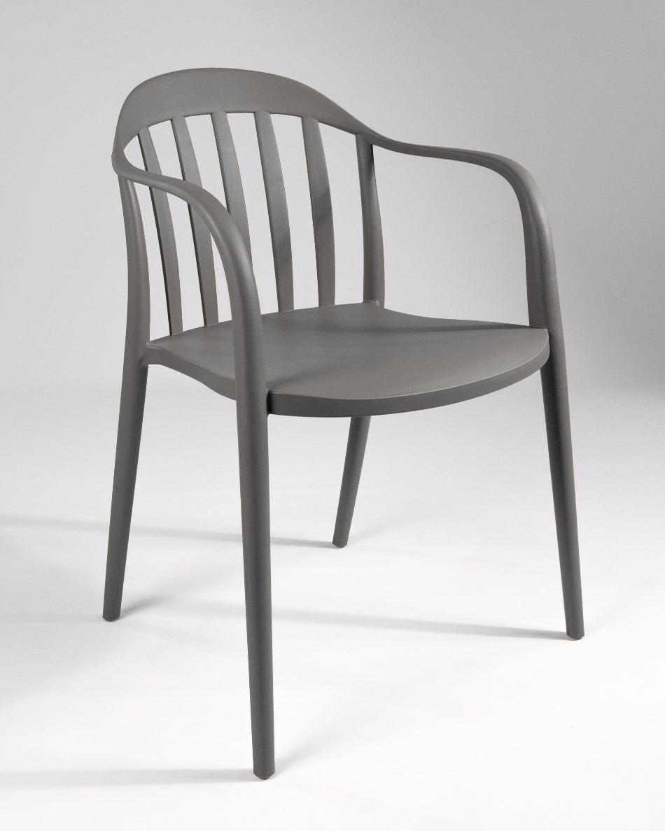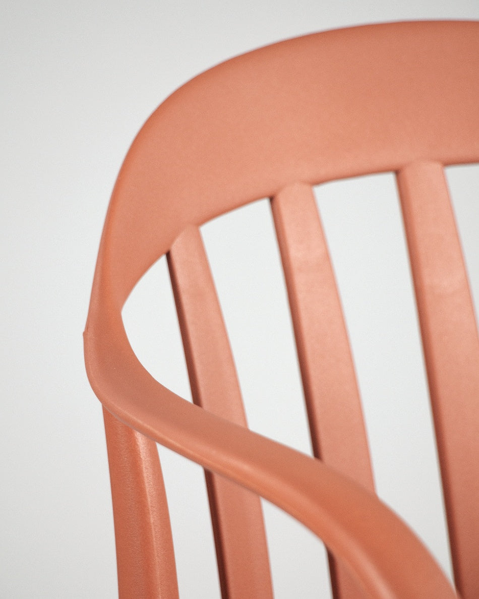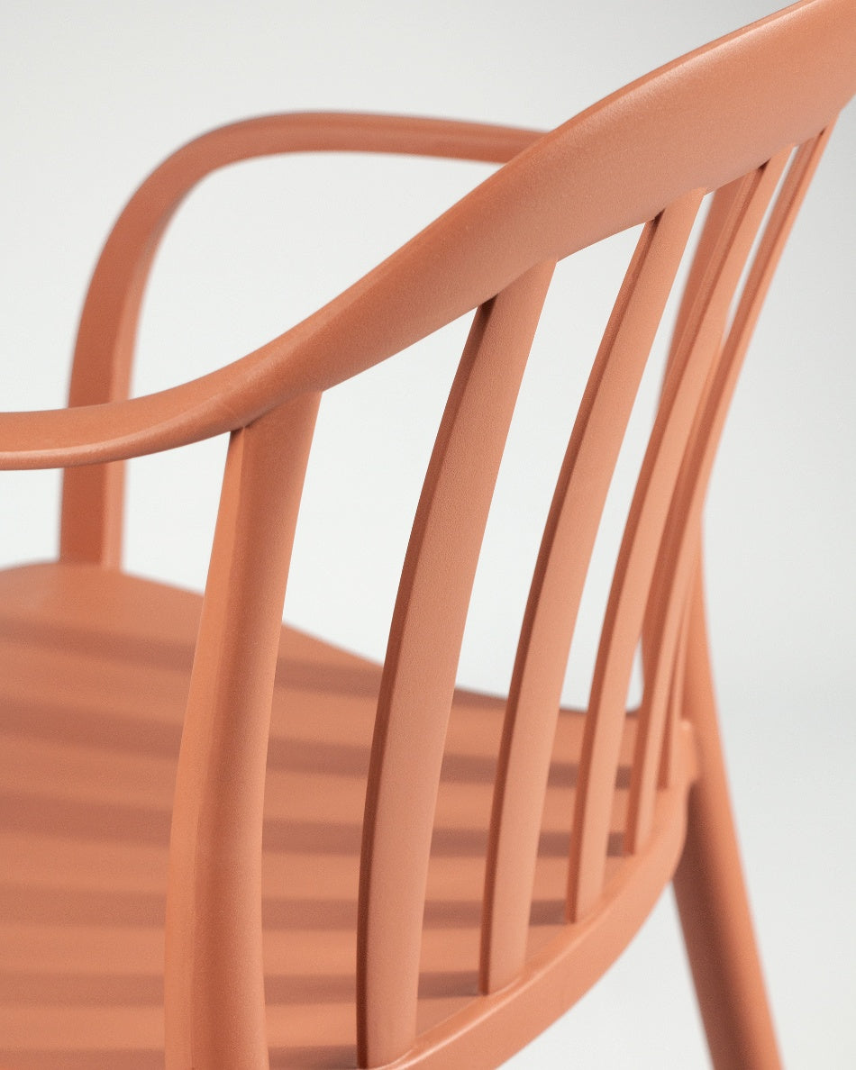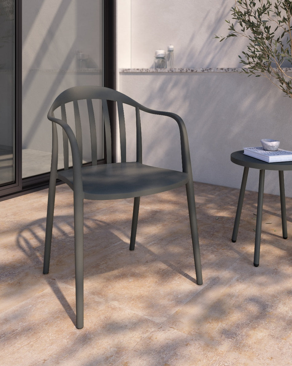 La silla Malibú presenta un diseño ligero y desenfadado, pensada para disfrutar del exterior con comodidad y un estilo actual. Su respaldo curvado con varillas aporta una estética fresca y abierta que encaja perfectamente en terrazas, patios o zonas de comedor al aire libre.