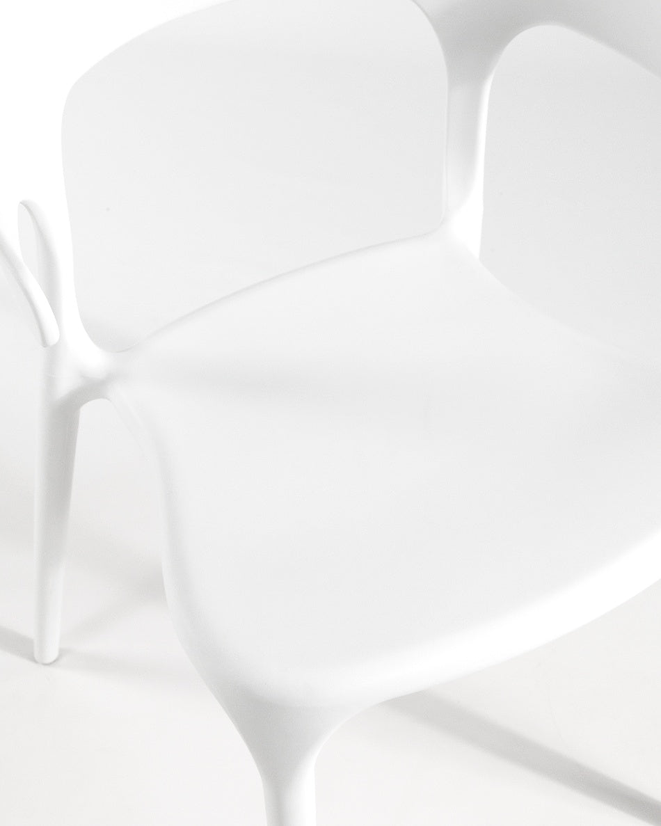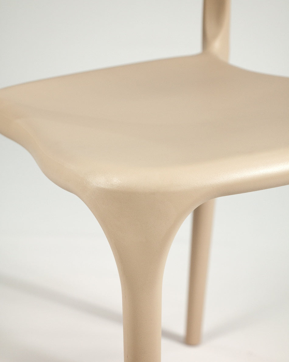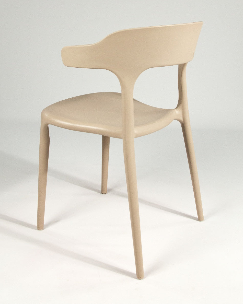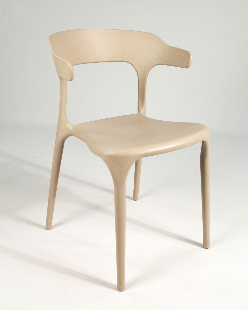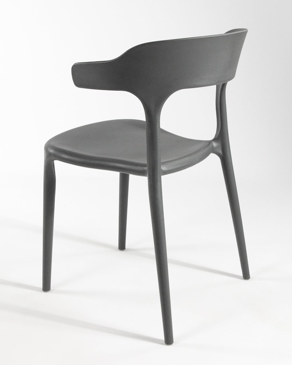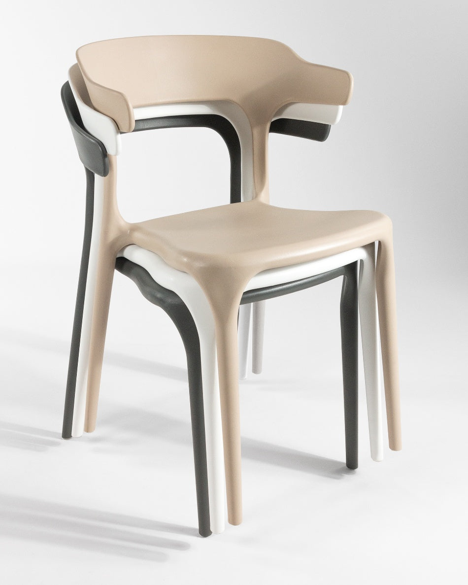 La silla Pisa presenta un diseño fluido y contemporáneo, con una silueta continua que aporta ligereza visual y un carácter actual al espacio. Su forma envolvente y proporciones equilibradas la convierten en una opción versátil para comedores, cocinas o zonas exteriores, integrándose con facilidad en ambientes modernos y funcionales.
