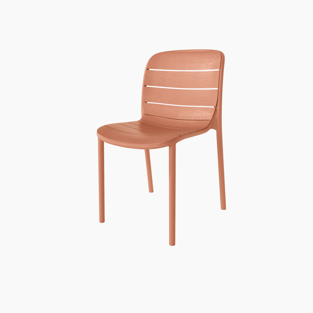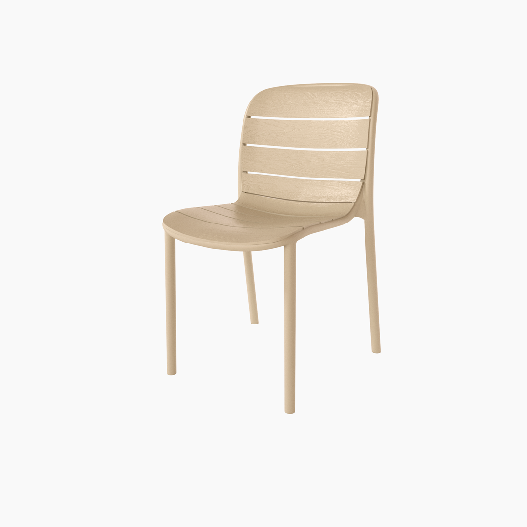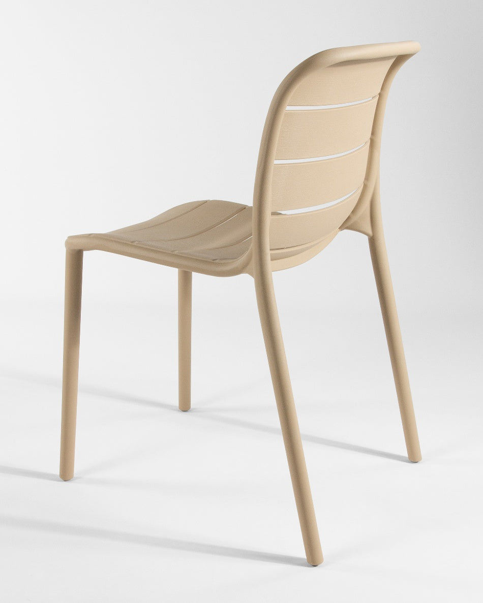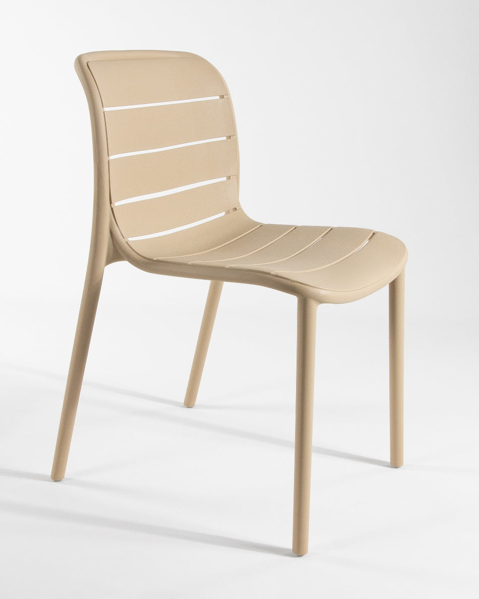 La silla Tulum destaca por su diseño sencillo y actual, pensada para aportar comodidad y ligereza visual en espacios exteriores. Sus líneas horizontales y la forma ligeramente curvada del respaldo crean una estética equilibrada que encaja con naturalidad en terrazas, patios o zonas de comedor al aire libre.