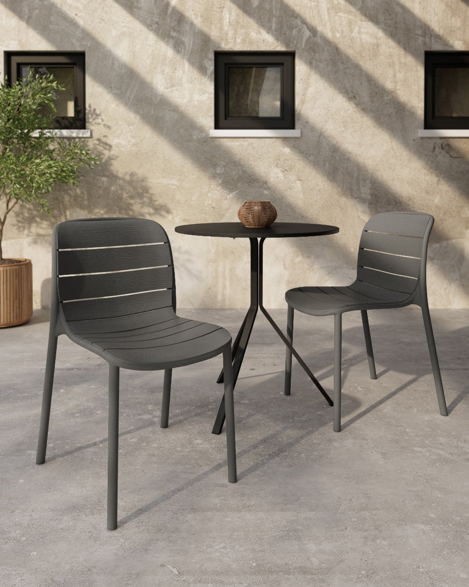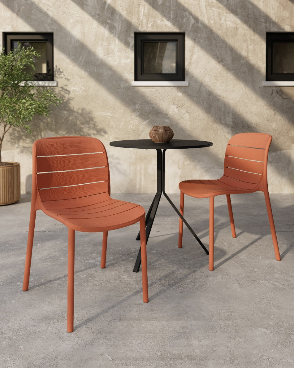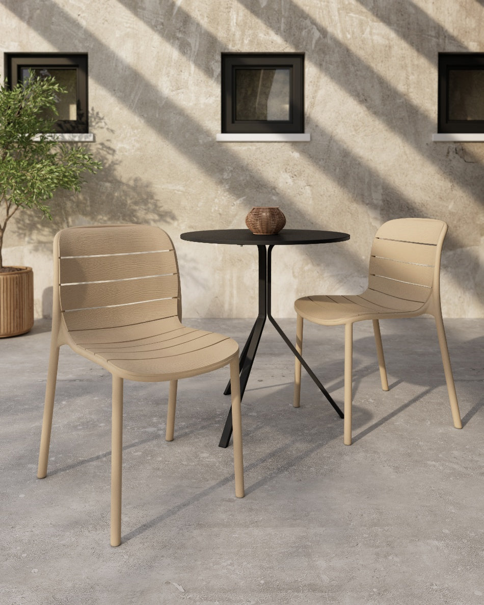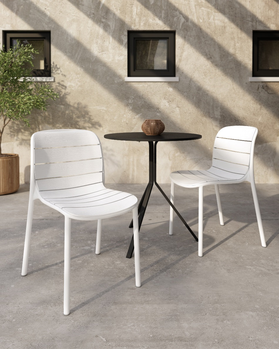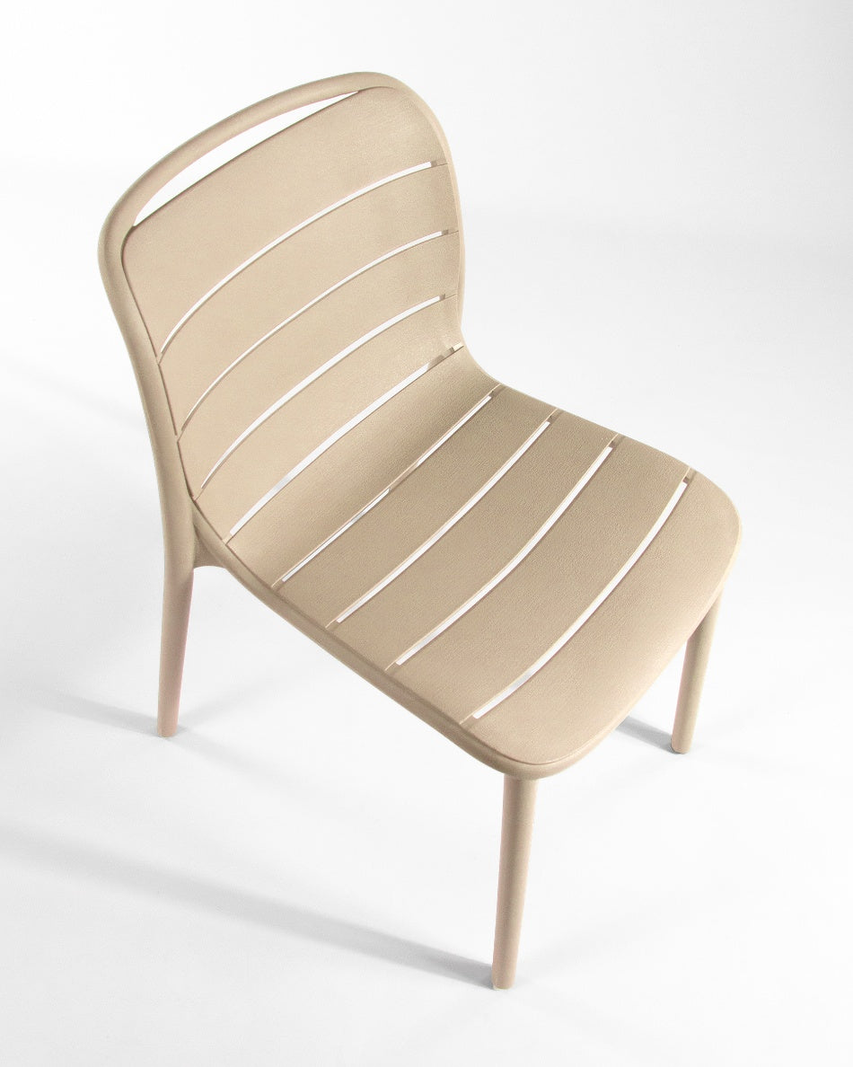 La silla Tulum destaca por su diseño sencillo y actual, pensada para aportar comodidad y ligereza visual en espacios exteriores. Sus líneas horizontales y la forma ligeramente curvada del respaldo crean una estética equilibrada que encaja con naturalidad en terrazas, patios o zonas de comedor al aire libre.