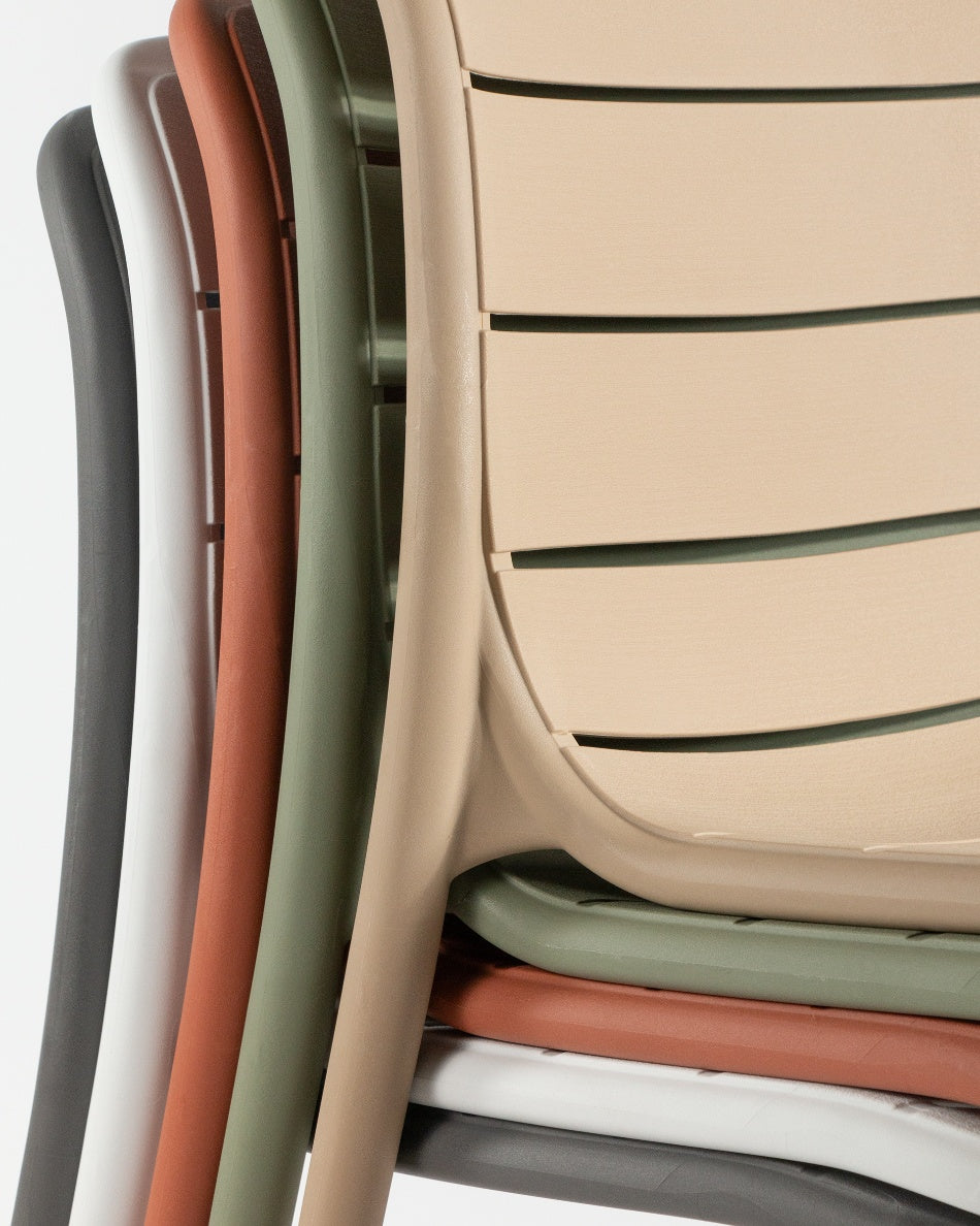 Fabricada en polipropileno, es resistente y fácil de mantener, además de ser apilable, lo que facilita su almacenaje cuando no se utiliza. Apta para exterior, combina funcionalidad y durabilidad, adaptándose tanto a entornos domésticos como a espacios profesionales.