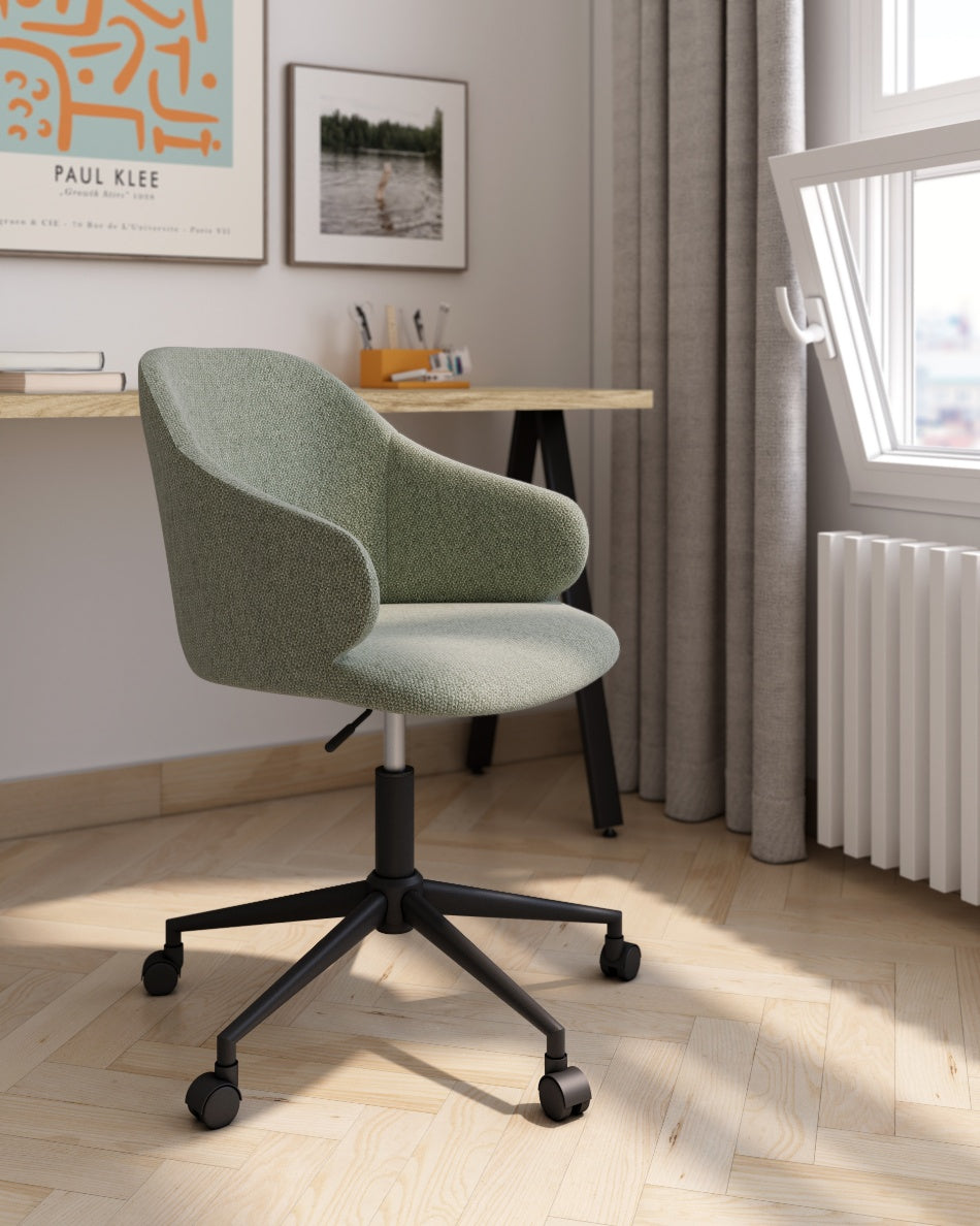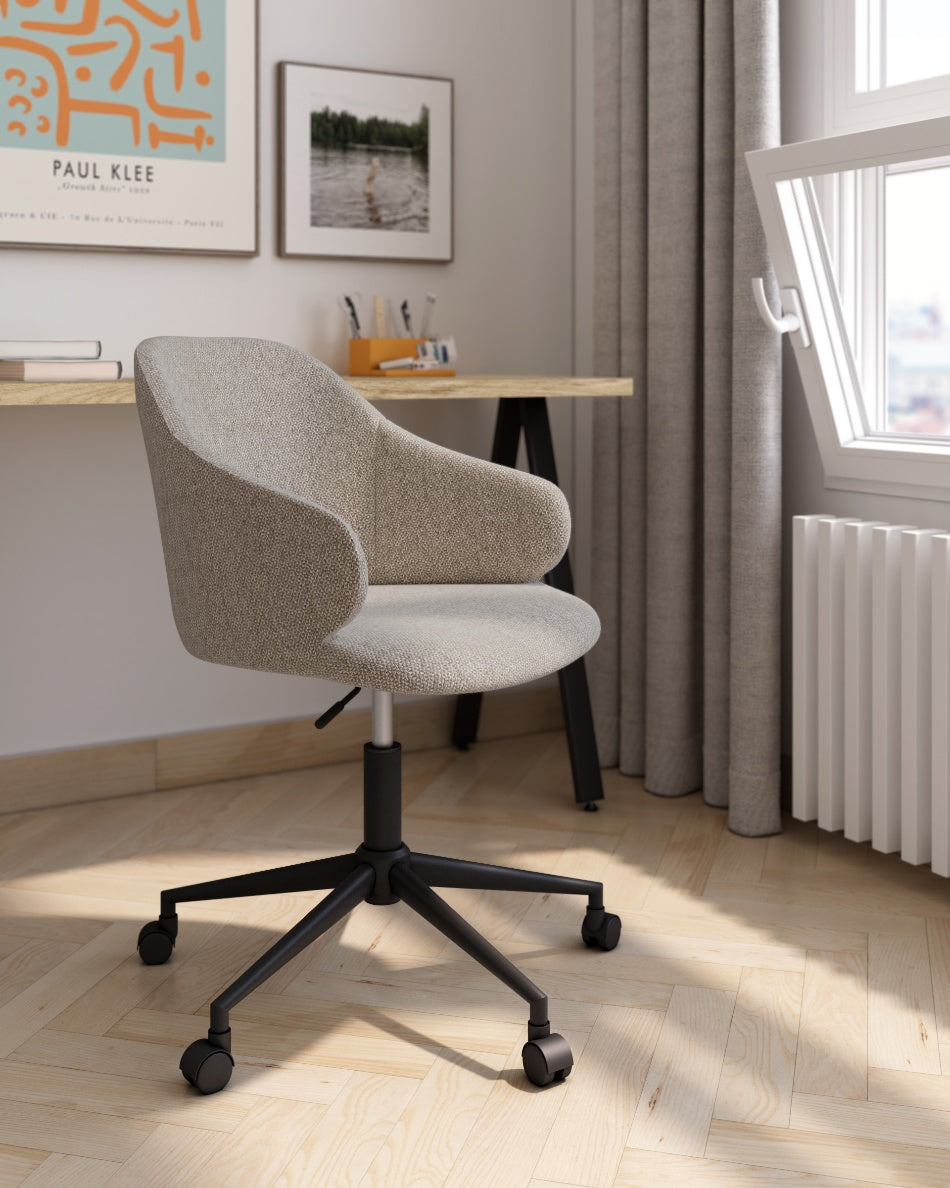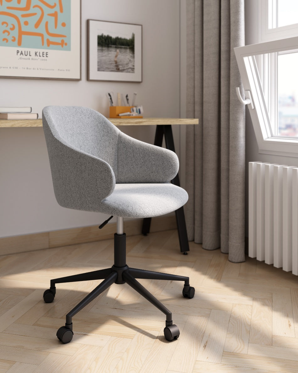 La silla con ruedas Glasgow presenta un diseño actual y funcional, pensada para aportar comodidad y estilo en espacios de trabajo, despachos en casa o zonas de estudio. Su silueta envolvente con respaldo curvado ofrece un buen apoyo lumbar y una postura cómoda durante el uso prolongado.