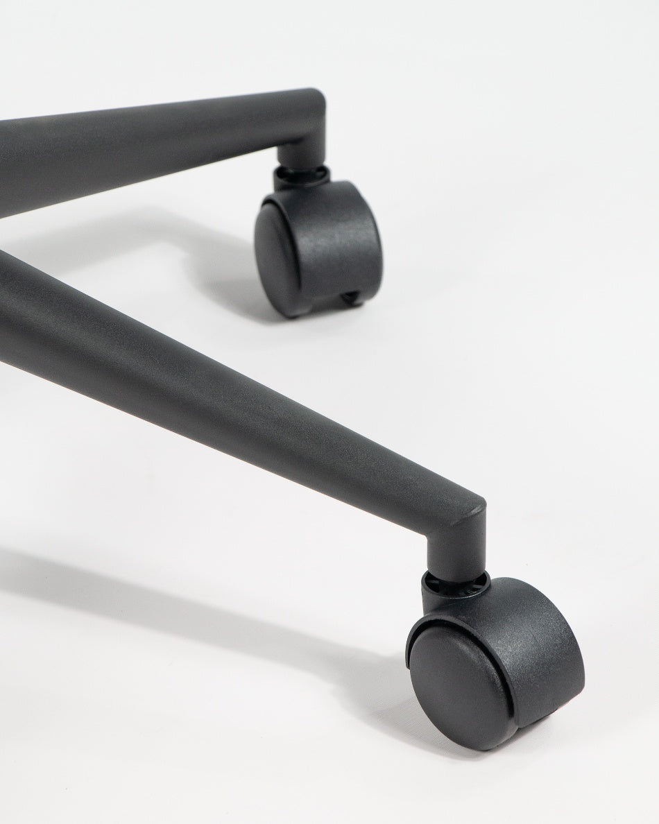 El asiento tapizado proporciona una sentada agradable, mientras que la base metálica con ruedas facilita el desplazamiento y aporta estabilidad. Su diseño equilibrado combina practicidad y una estética moderna, convirtiéndola en una opción versátil tanto para entornos domésticos como profesionales.