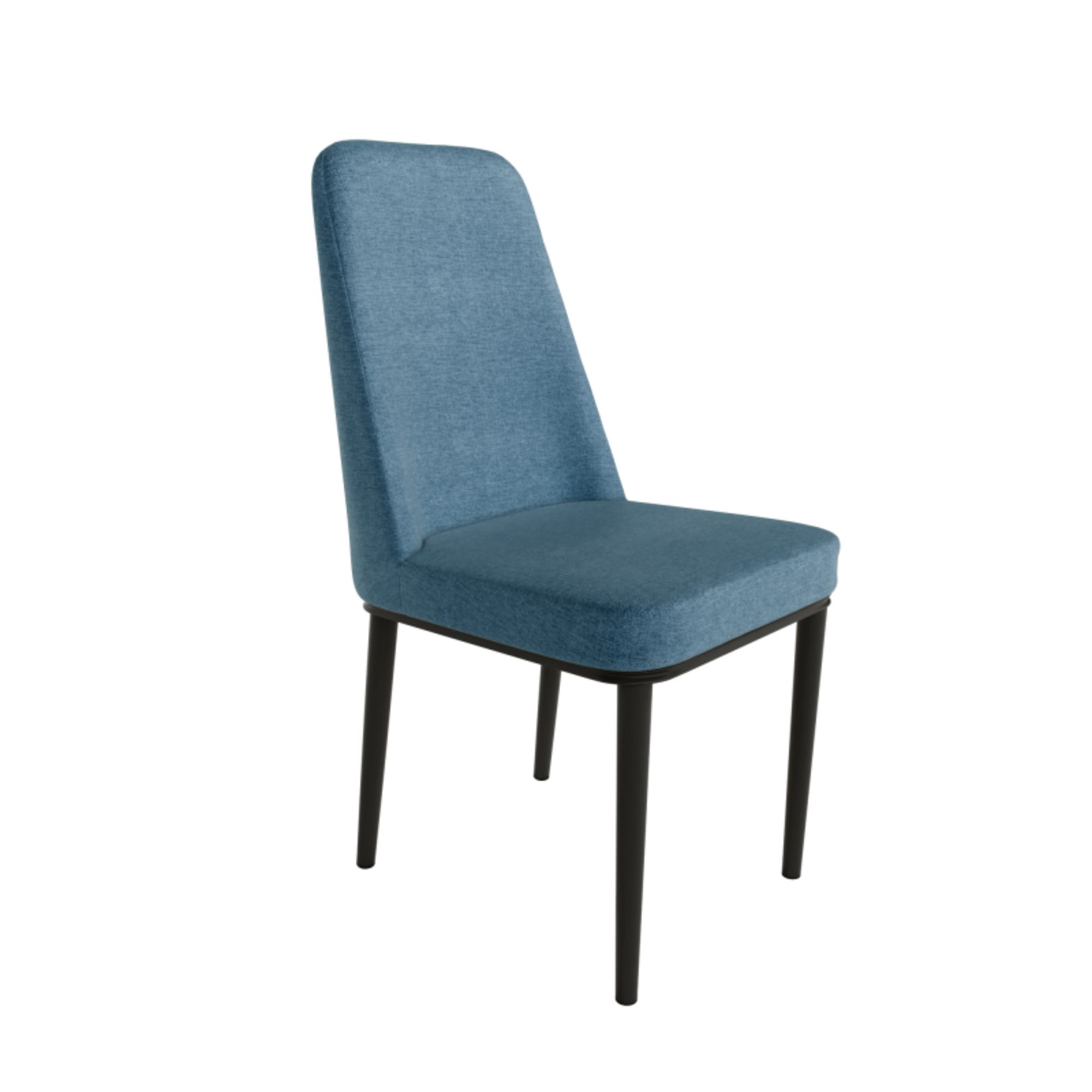 La silla tapizada Oslo azul con patas de metal, es una excelente opción para quienes buscan comodidad y estilo.